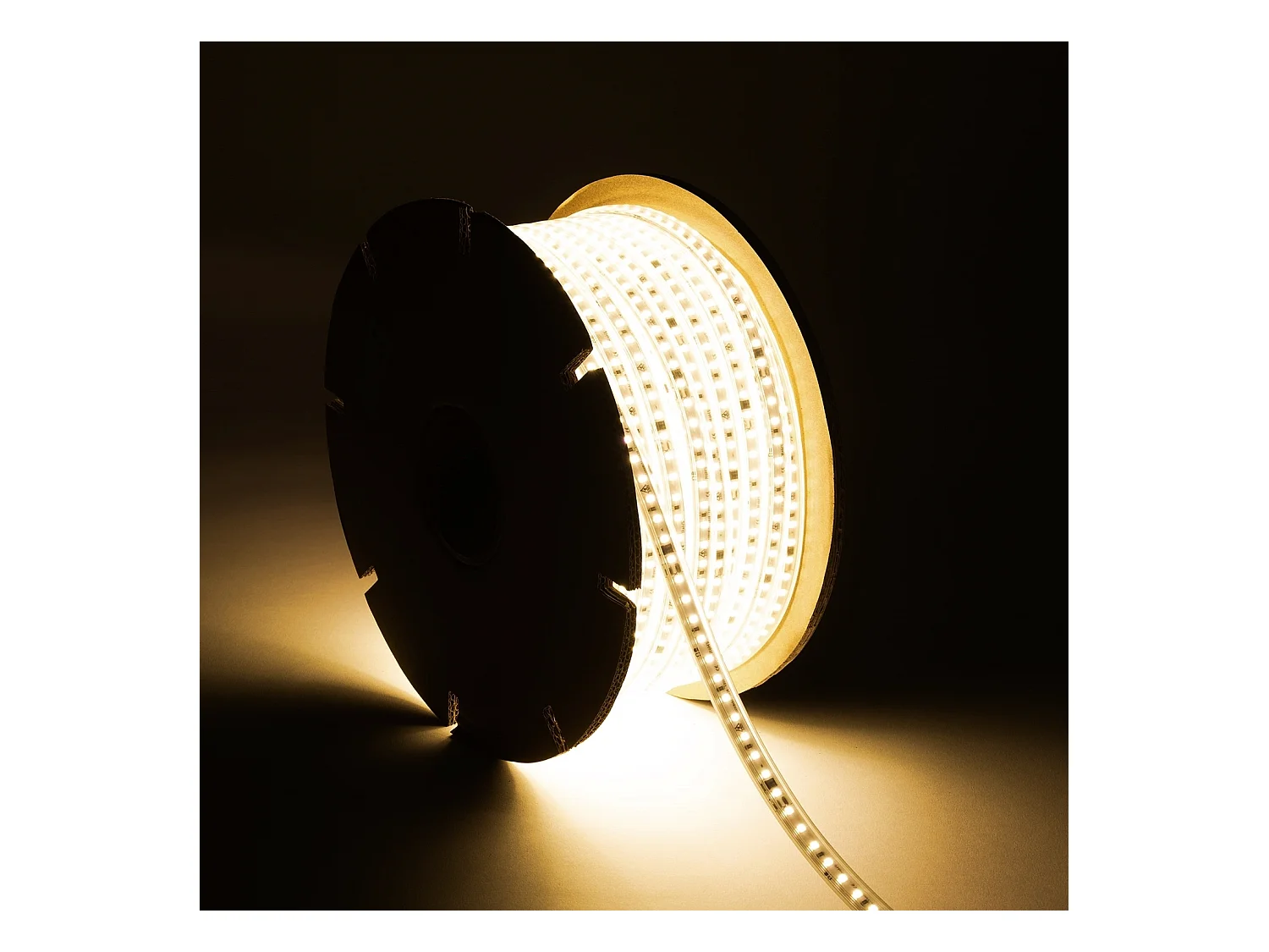 Ruban LED Dimmable 220V SMD Auto-redressement 120 LED/m BOBINE 50m 14W/m 1680lm/m SILICONE FLEX Largeur 12mm Coupe 10cm IP67 2700K Blanc chaud