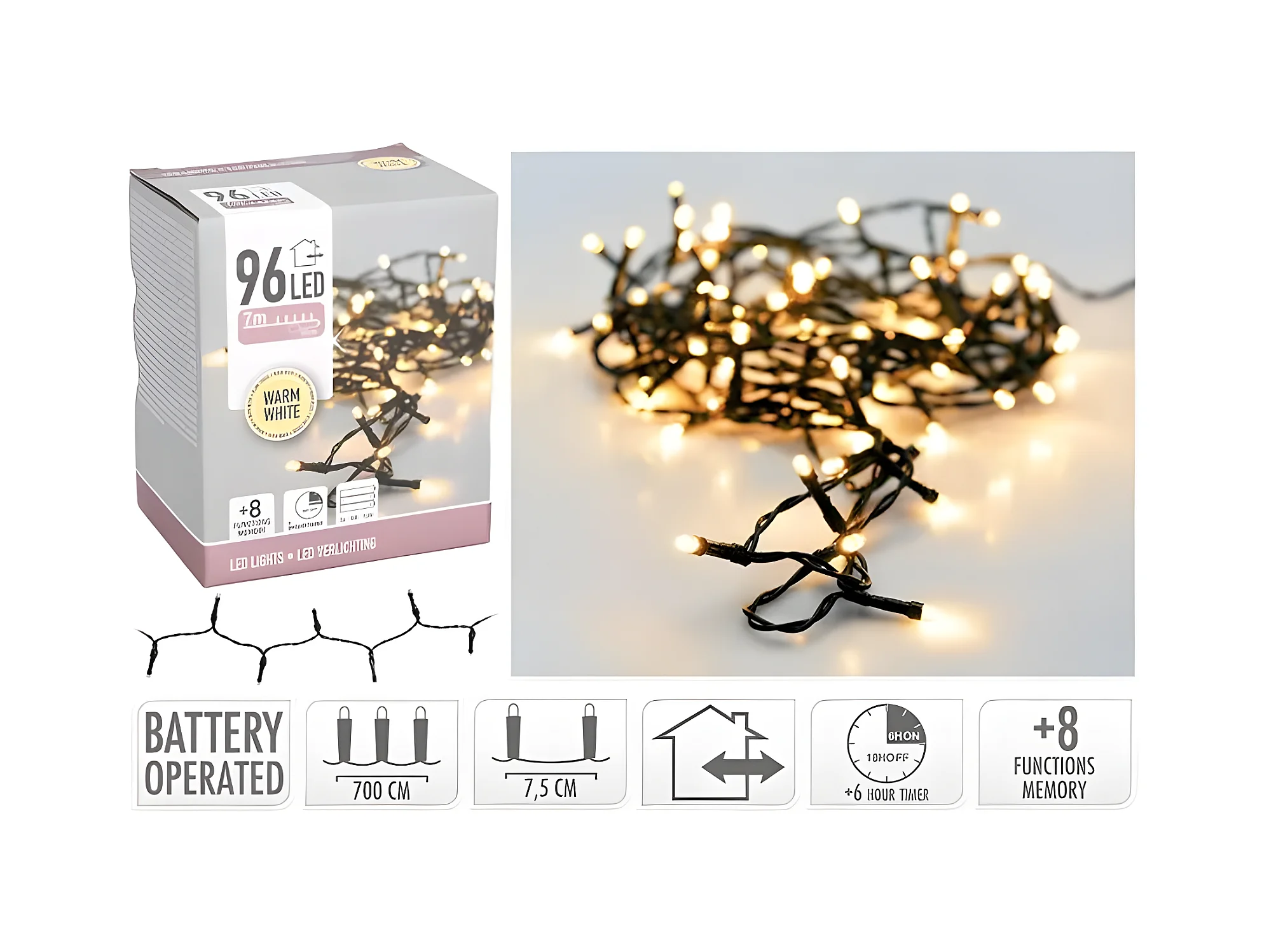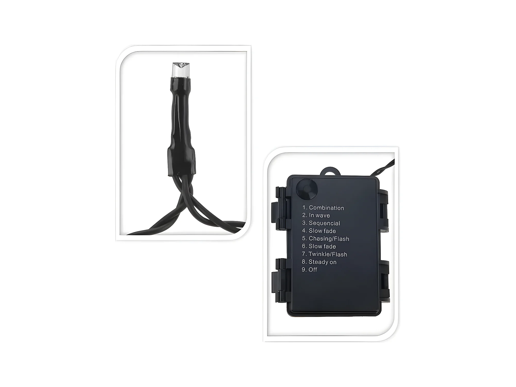Guirlande LED Extérieure Câble Noir à Piles 1.8m Blanc Chaud 2700K