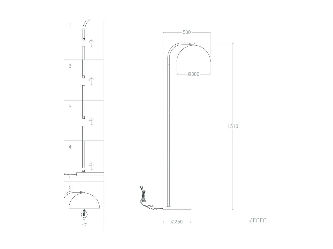 Lampe à arc moderne chrome avec abat-jour blanc - Arc Basic
