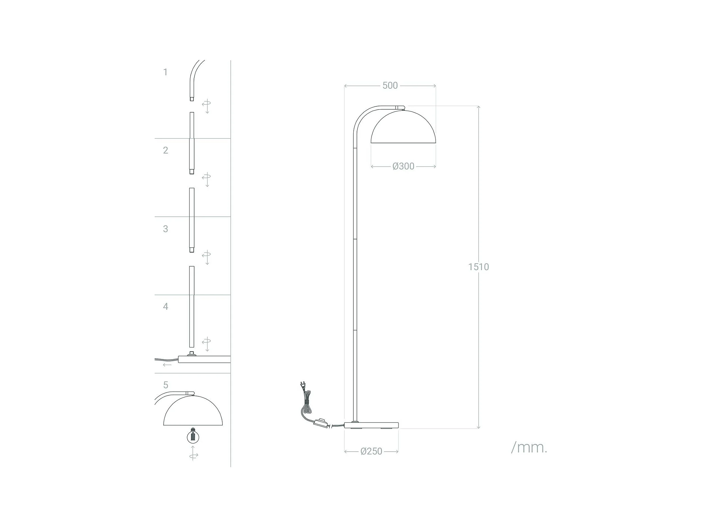 Lampe à arc moderne noire avec abat-jour en tissu noir - Arc Basic