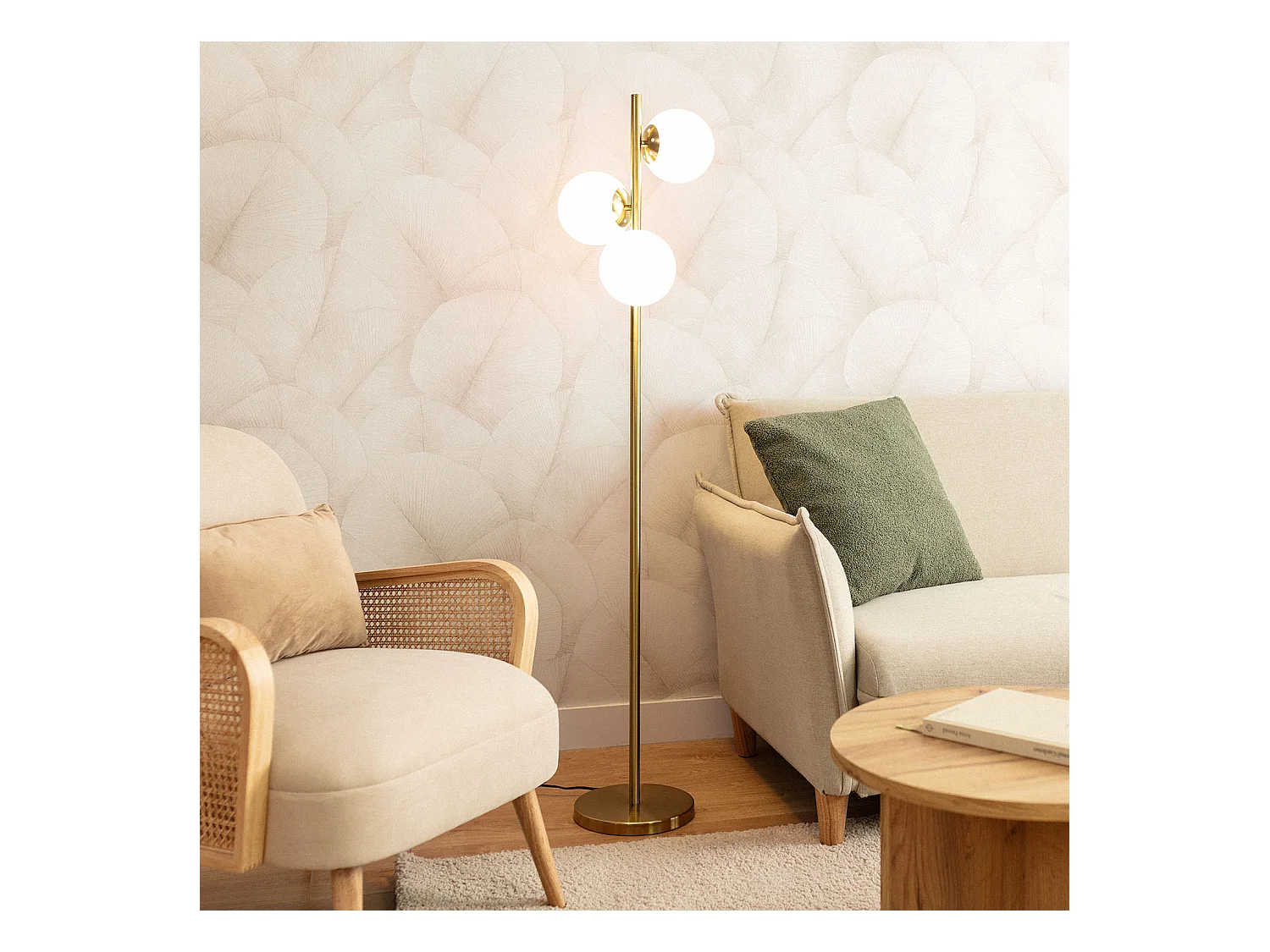 Lampadaire Métal et Verre Otos 3 Spots Doré