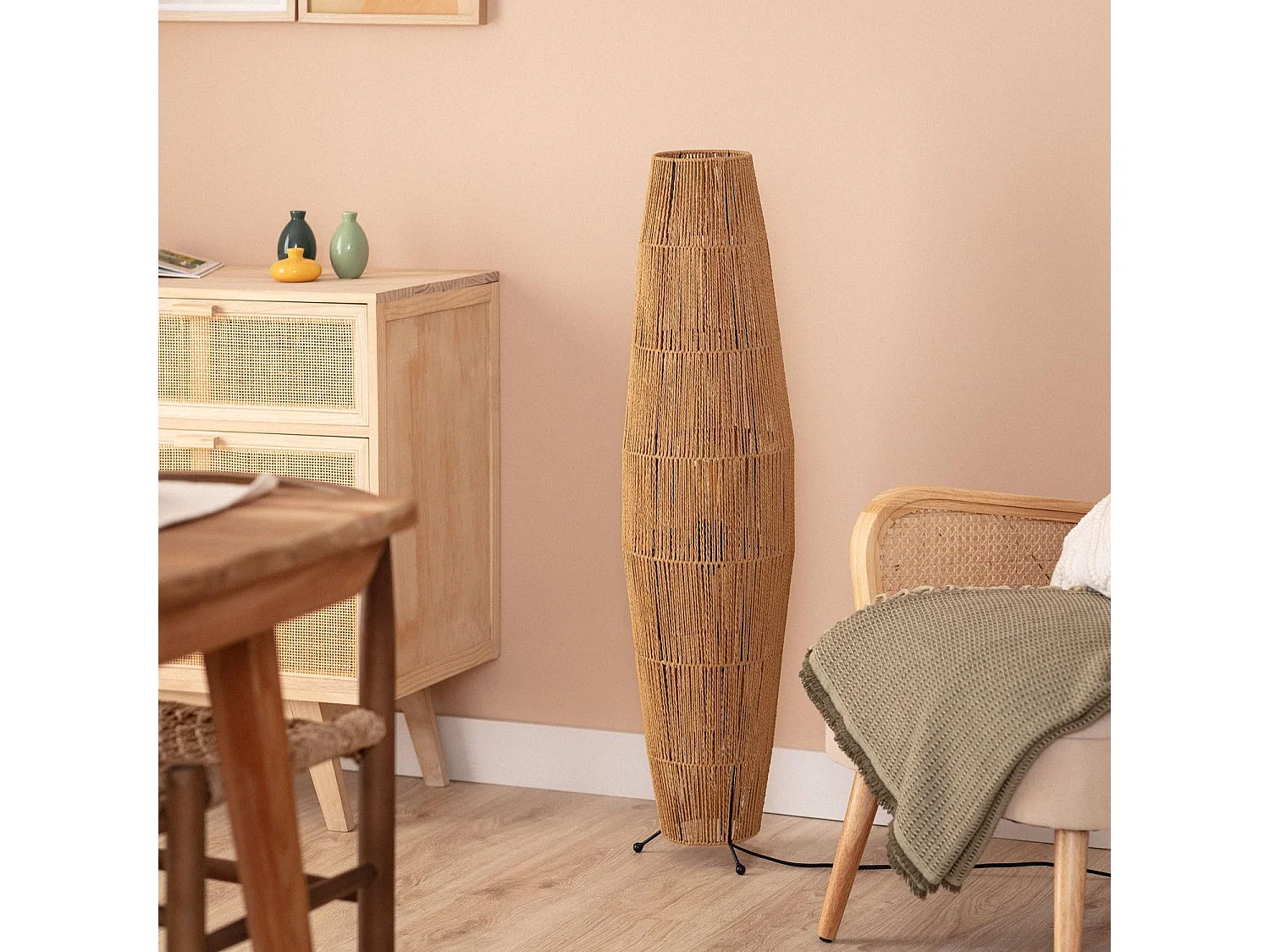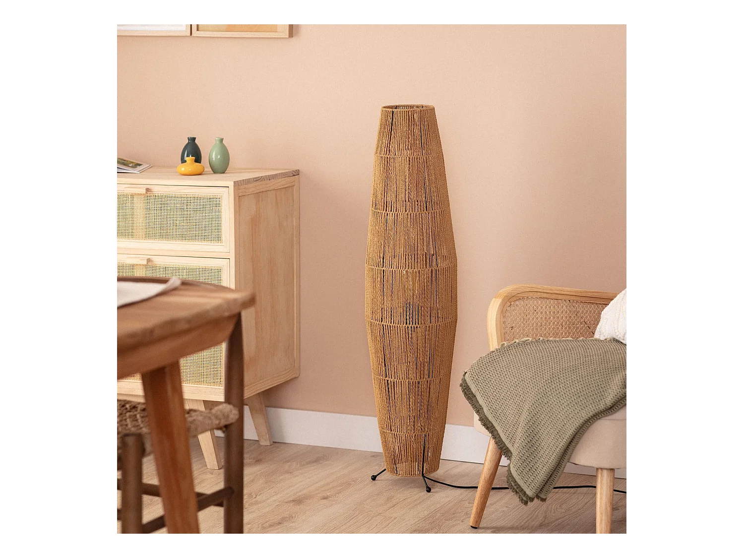 Lampadaire Trépied en bois et abat-jour corde H 127 cm