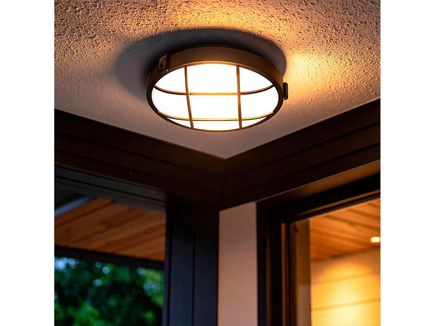 Plafonnier Extérieur Rond à Grille Hublot Ø220 mm Noir