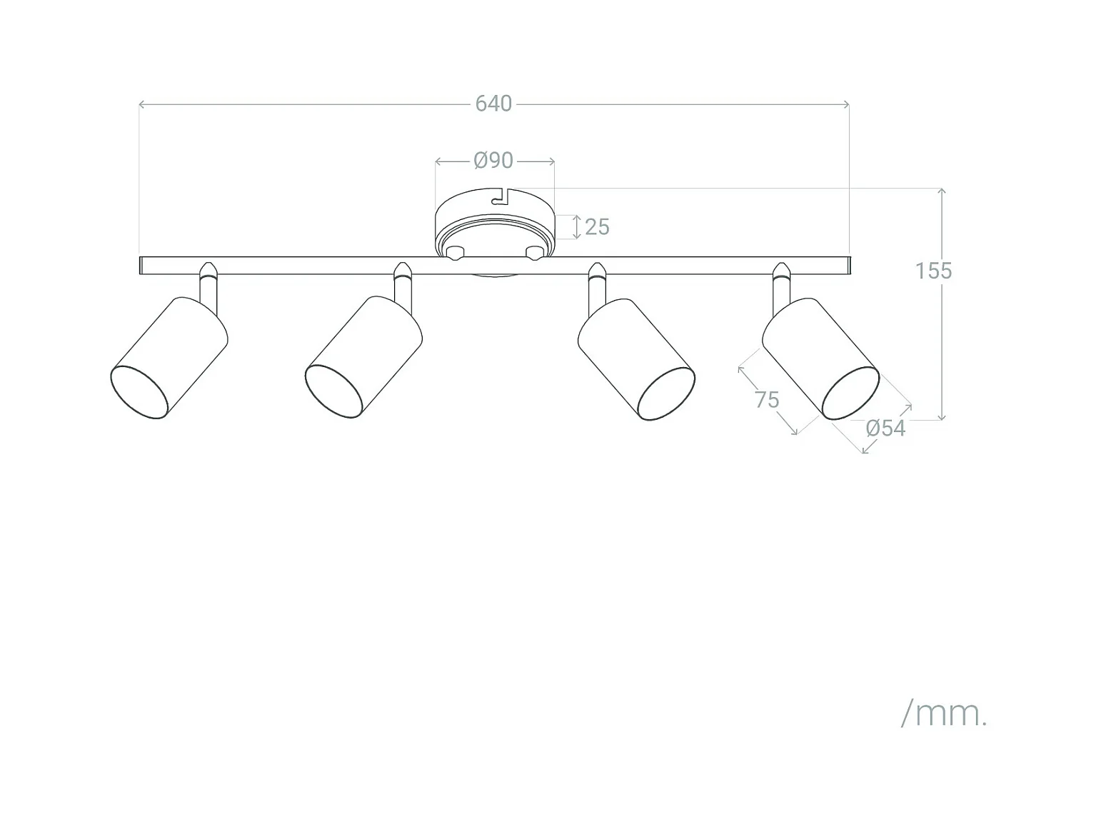 Plafonnier Orientable Métal 4 Spots Albus Black Noir