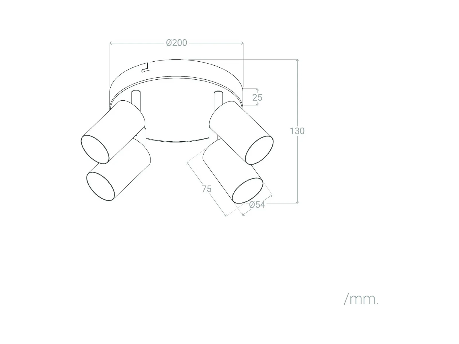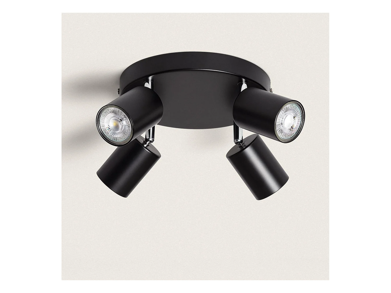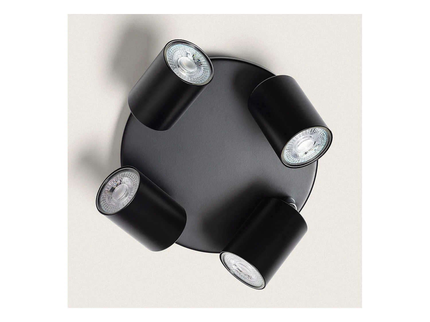 Plafonnier Orientable Rond Métal 4 Spots Albus Black Noir