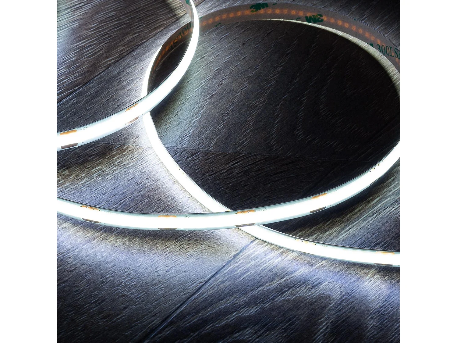 Ruban LED 24V COB 320 LED/m 5m 10W/m 1000lm/m Largeur 8mm Coupe 5cm IP20 CRI90 4000K Blanc neutre