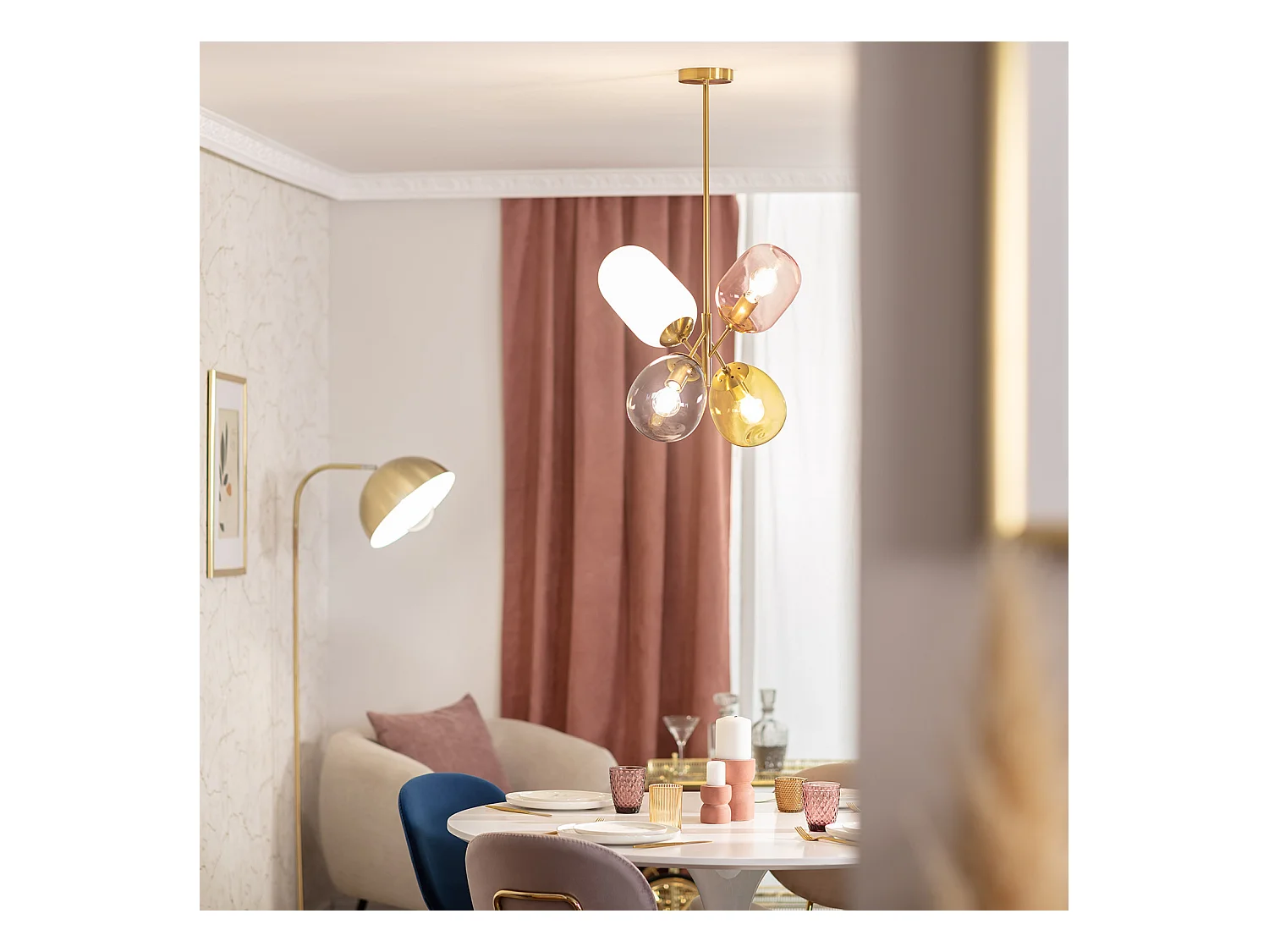 Suspension Métal et Verre Yelitza Or rose