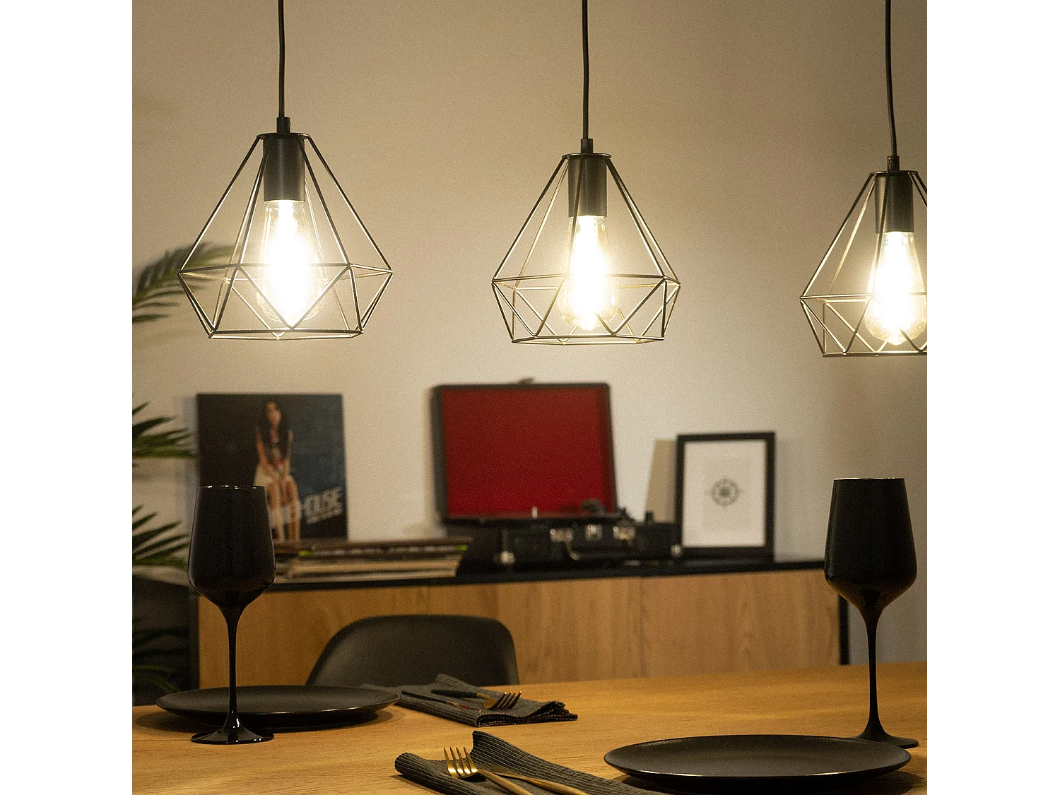 Suspension lustre et plafonnier noir