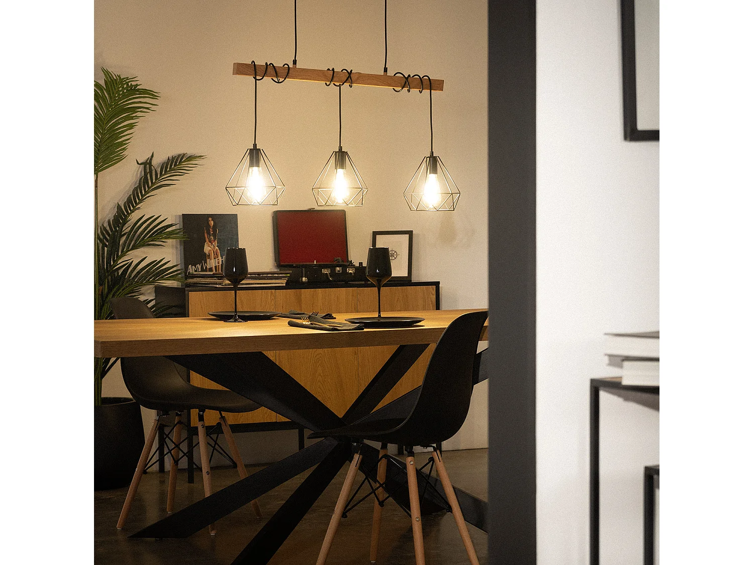 Suspension et lustre noir industriel