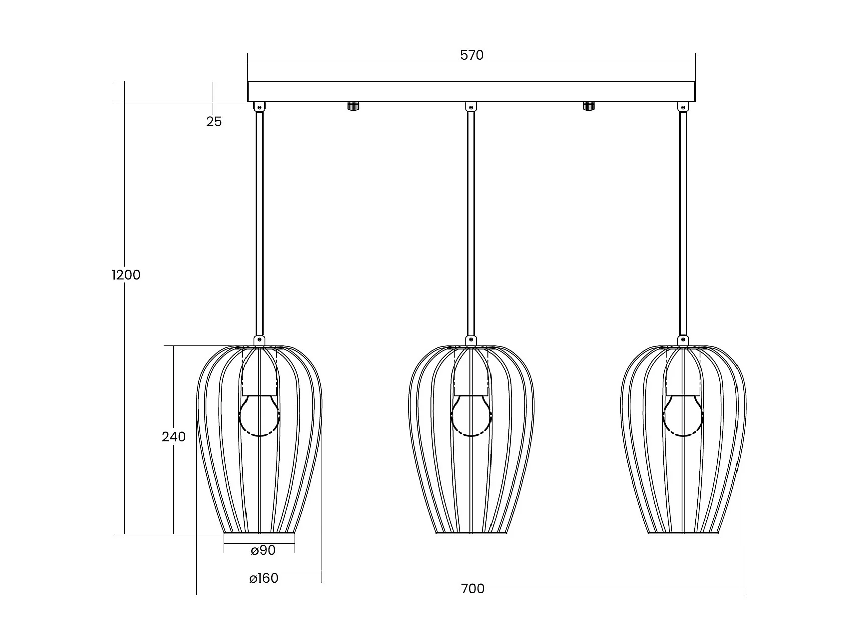 Suspension Métal Telmi 3 Spots Noir