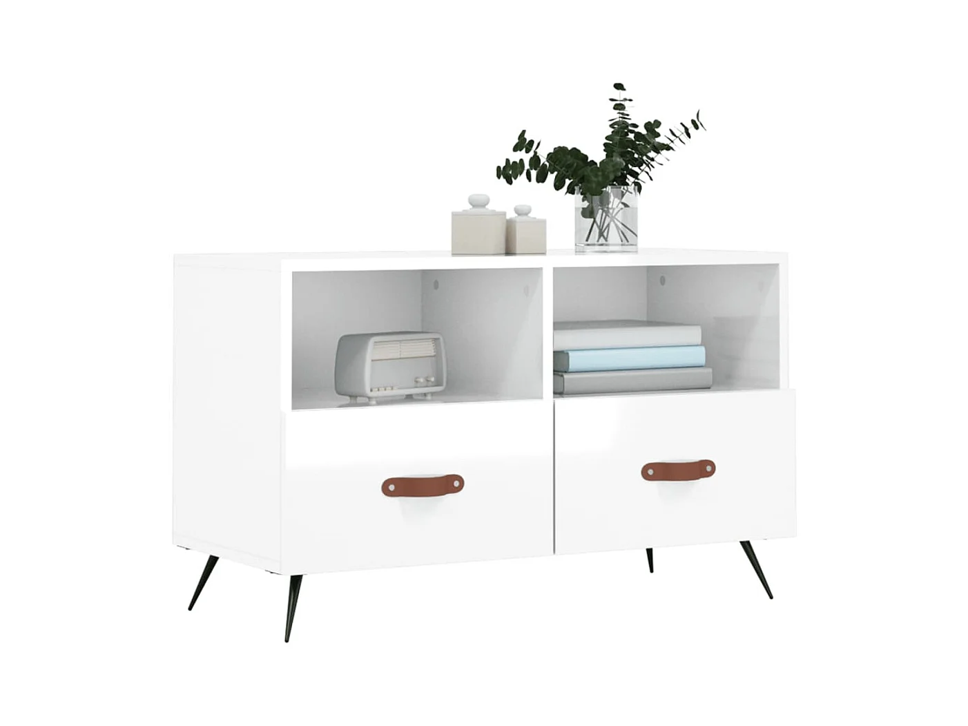 Cloughaneely Meuble TV blanc brillant 80x35x50 cm bois d'ingénierie