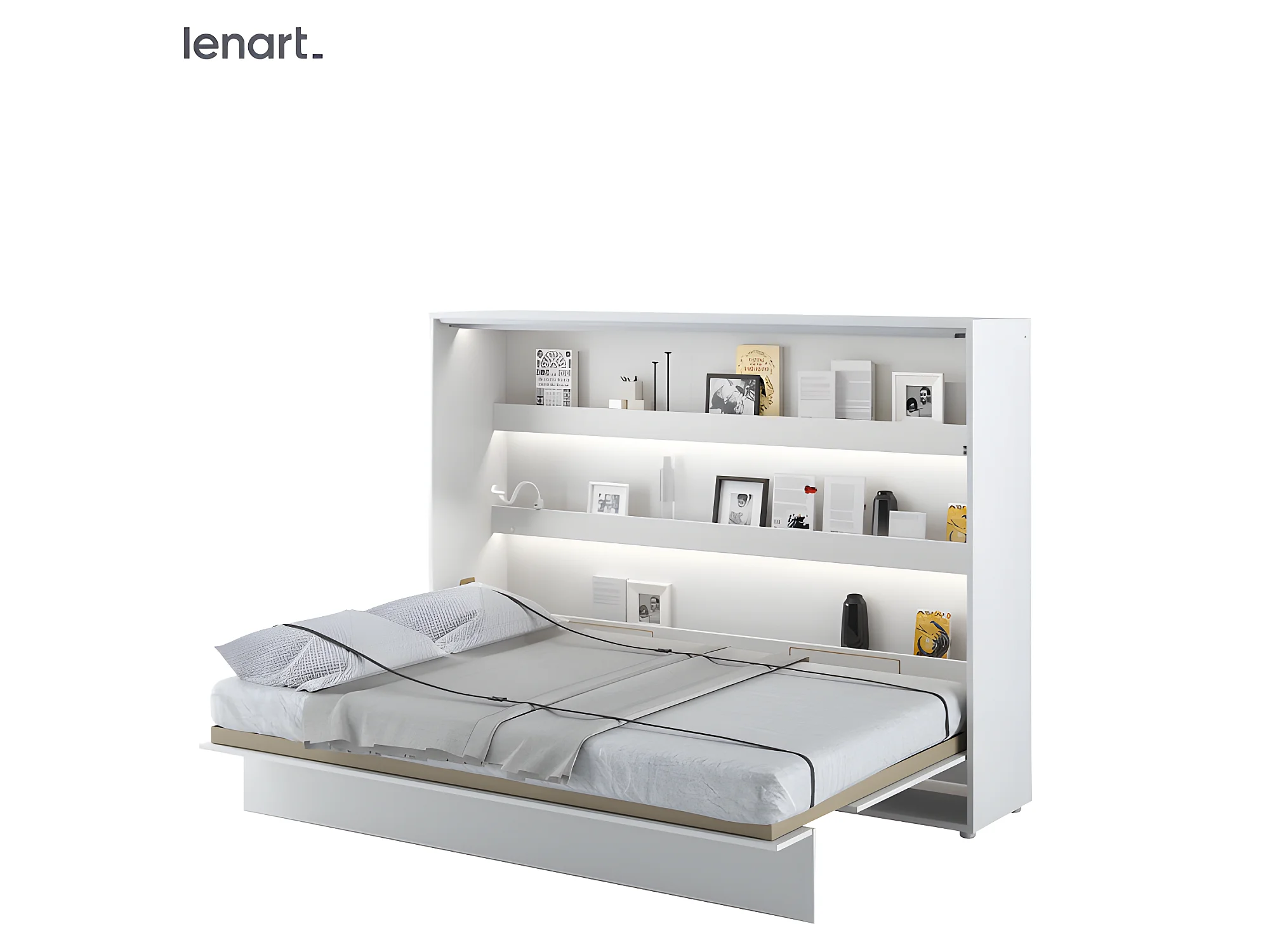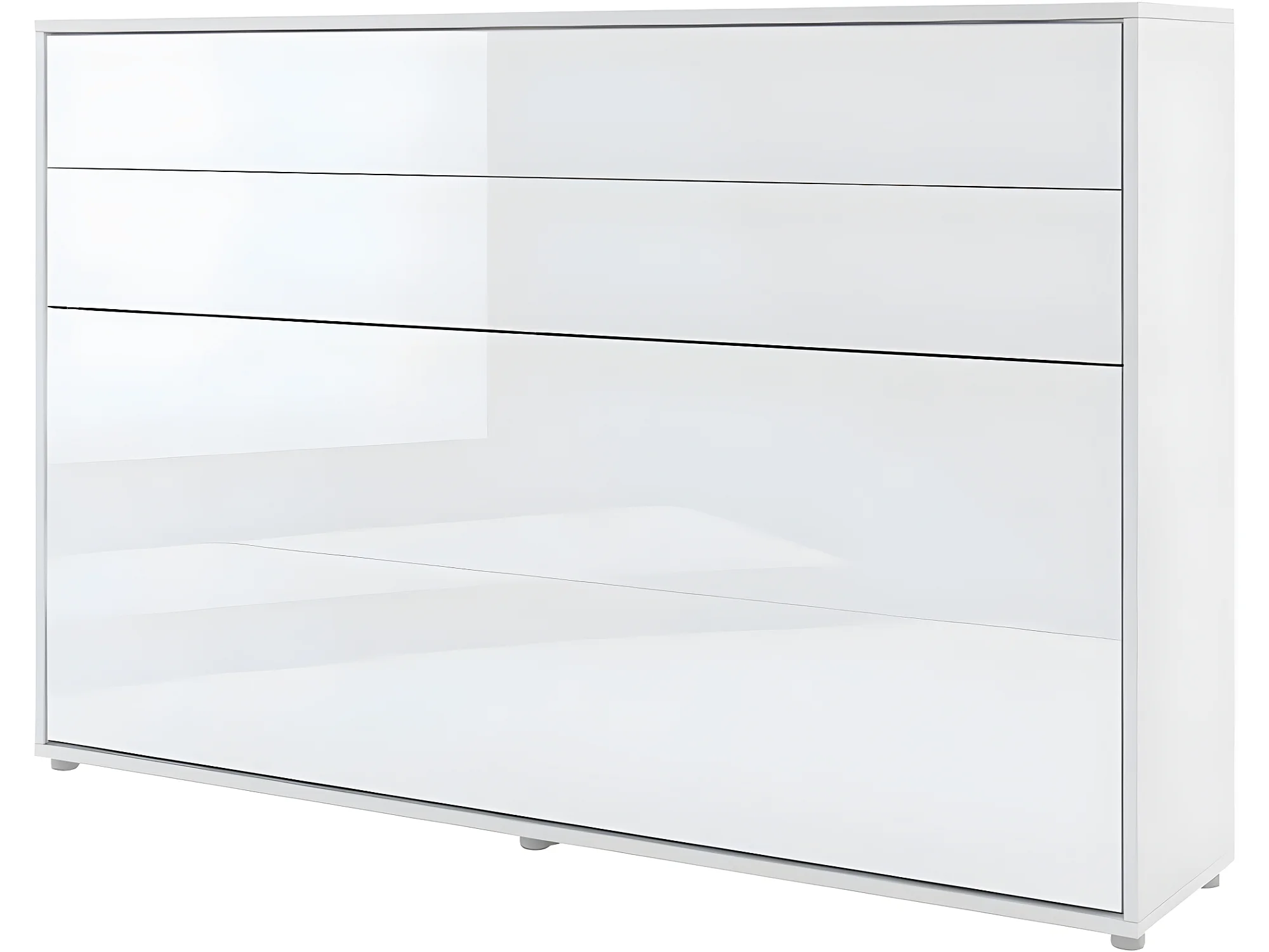 Lenart Armoire Lit escamotable Horizontal 120x200 cm Blanc brillant Lit Rabattable Lit Mural"Consus"
