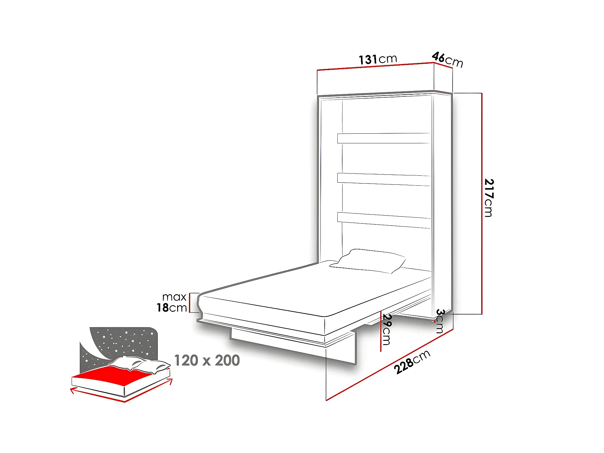 Lenart Lit escamotable MATELAS inclus Vertical 120x200cm Chêne artisan Lit Rabattable"Consus"