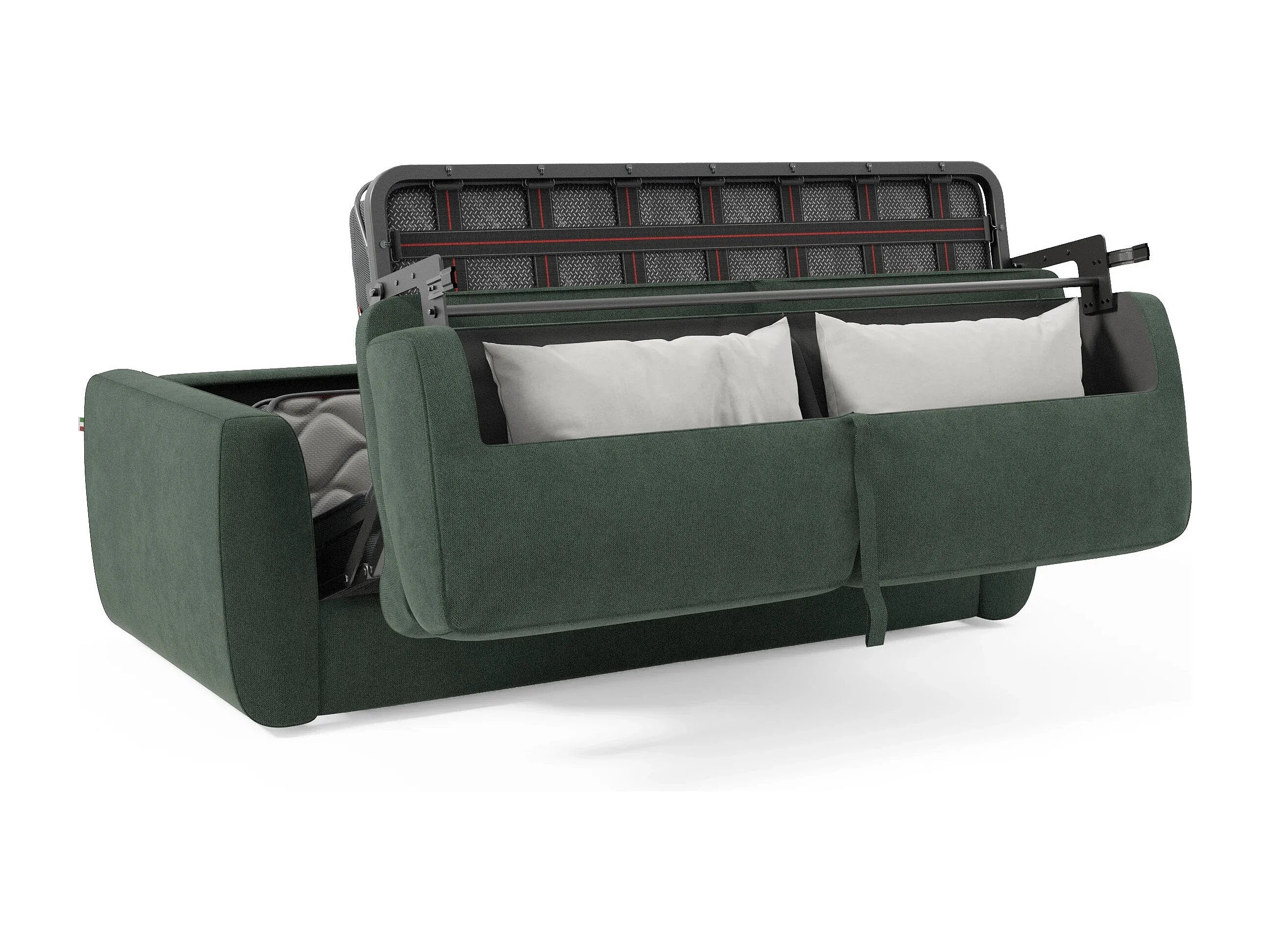 Leonida Canapé convertible déhoussable et matelas H18 cm - coffre à oreiller détachable 222 cm vert