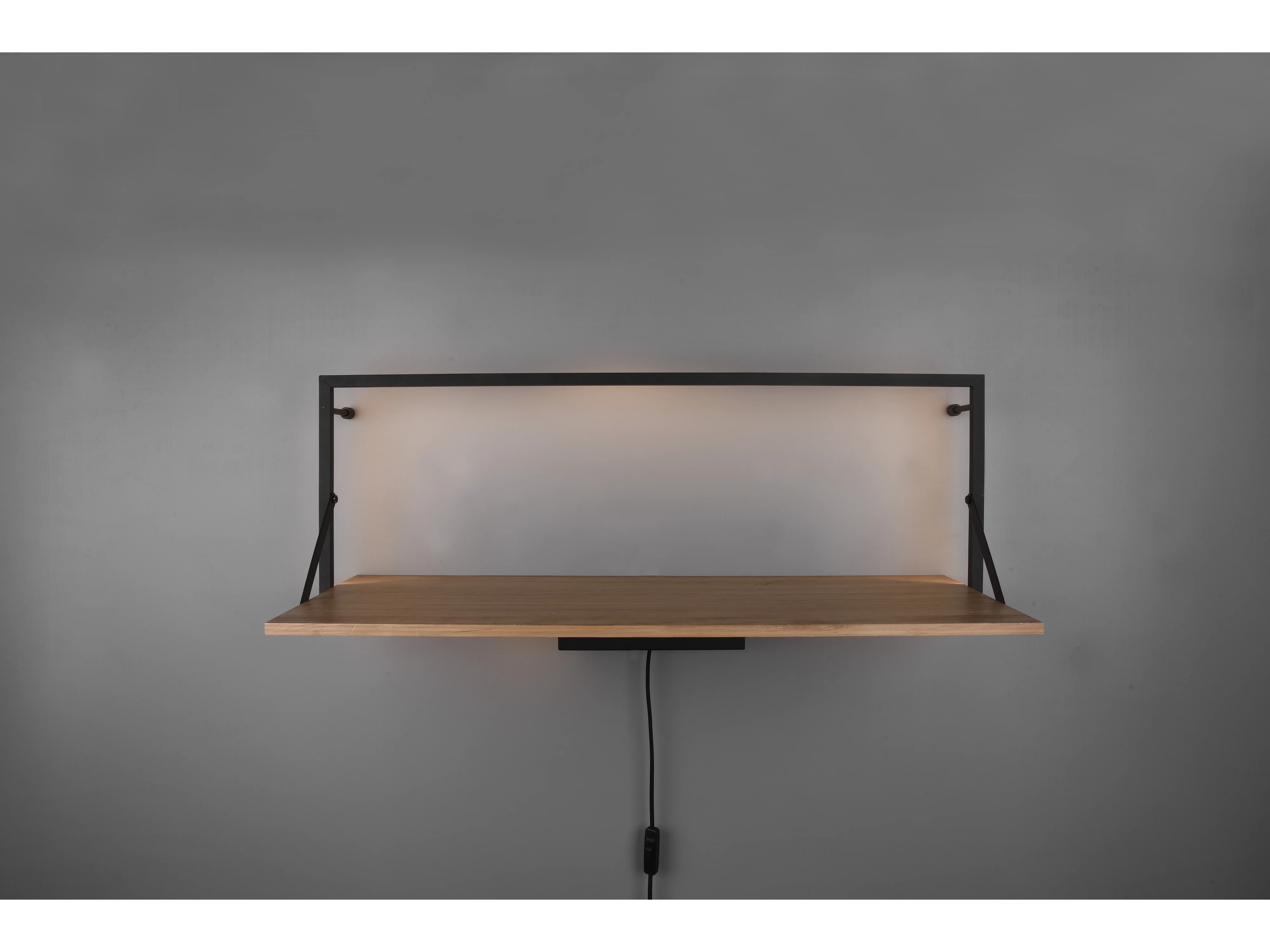 Leonie - Étagère murale avec bande LED - Naturel/Noir - 30x90cm