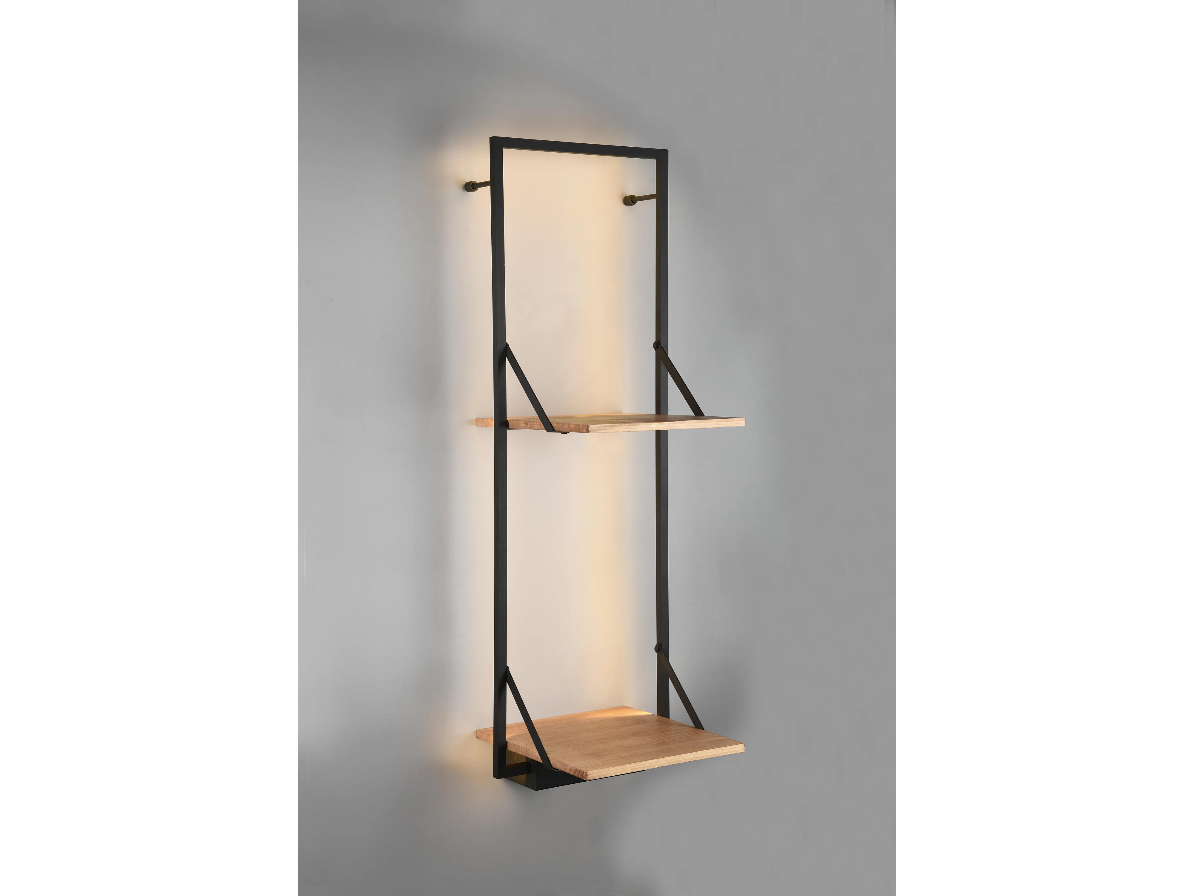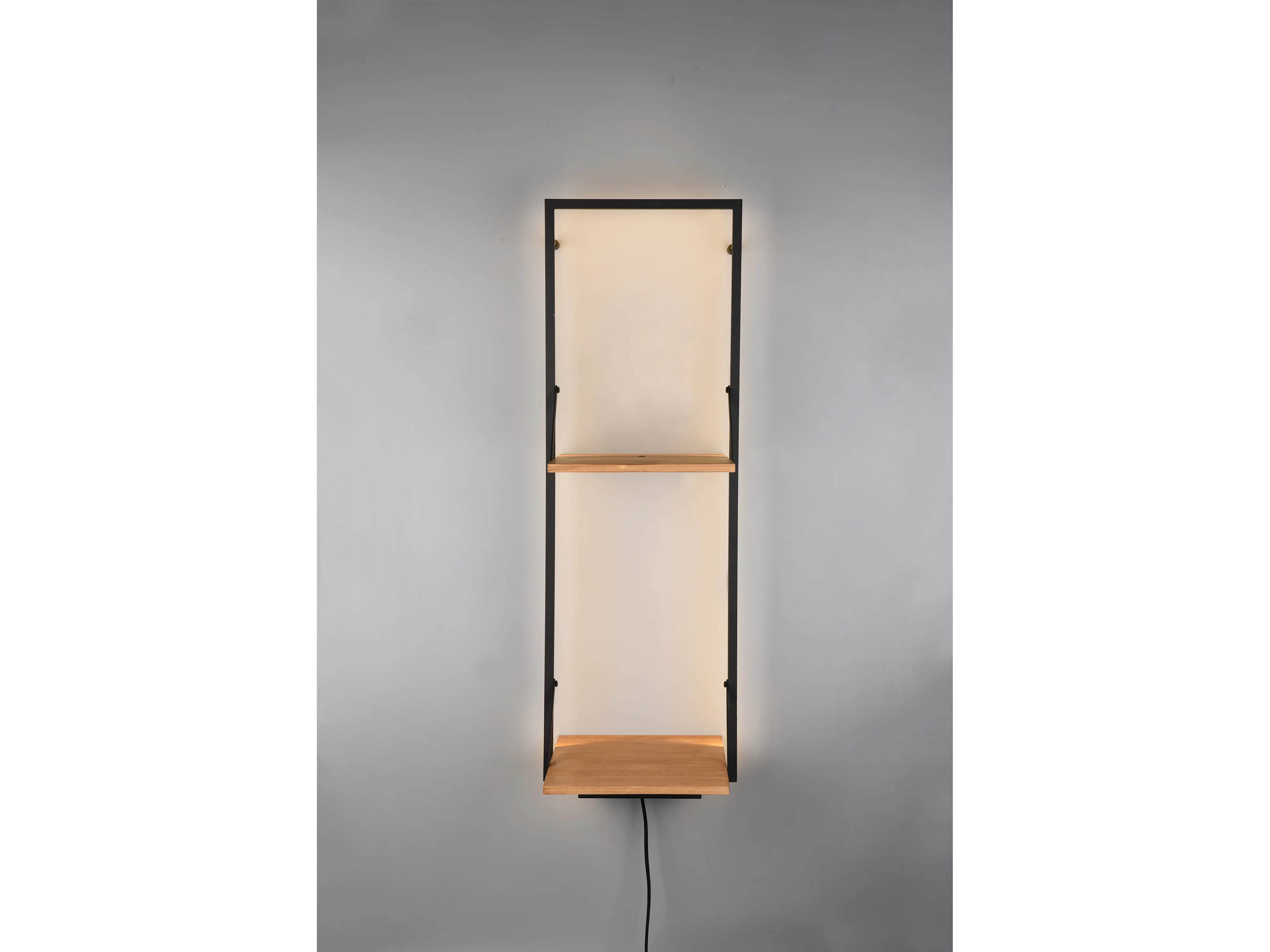 Leonie - Étagère murale avec bande LED - Naturel/Noir - 94x32cm
