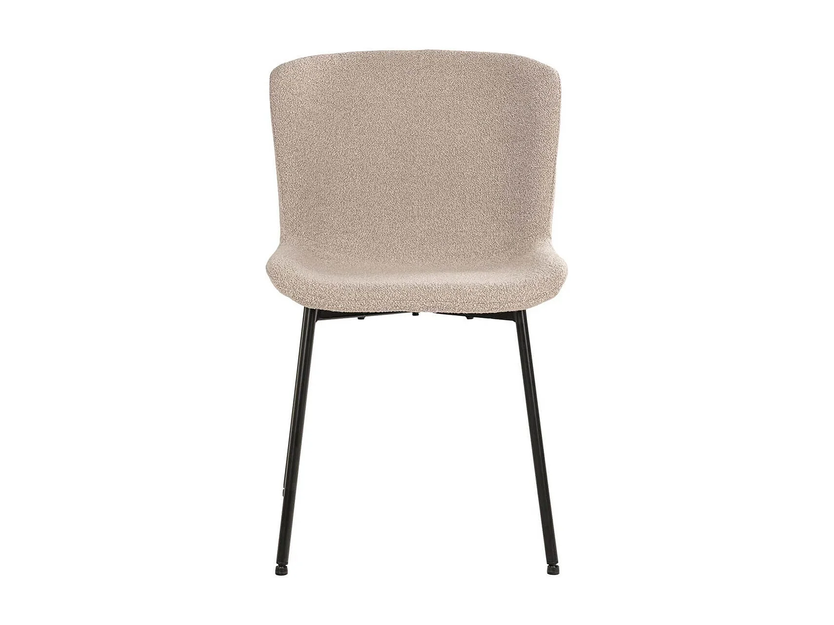 LESLI - Lot de 2 Chaises Tissu Bouclé Beige Pieds Métal Noir