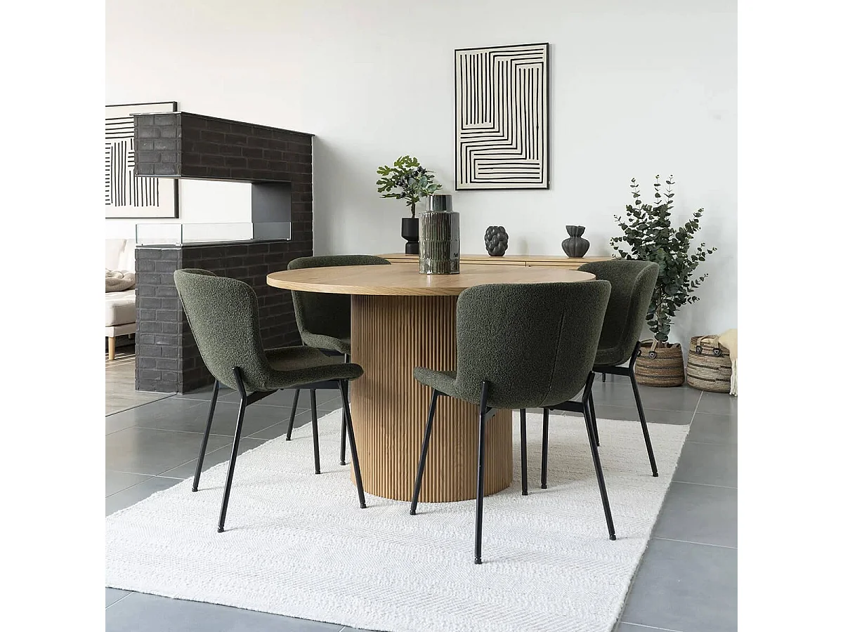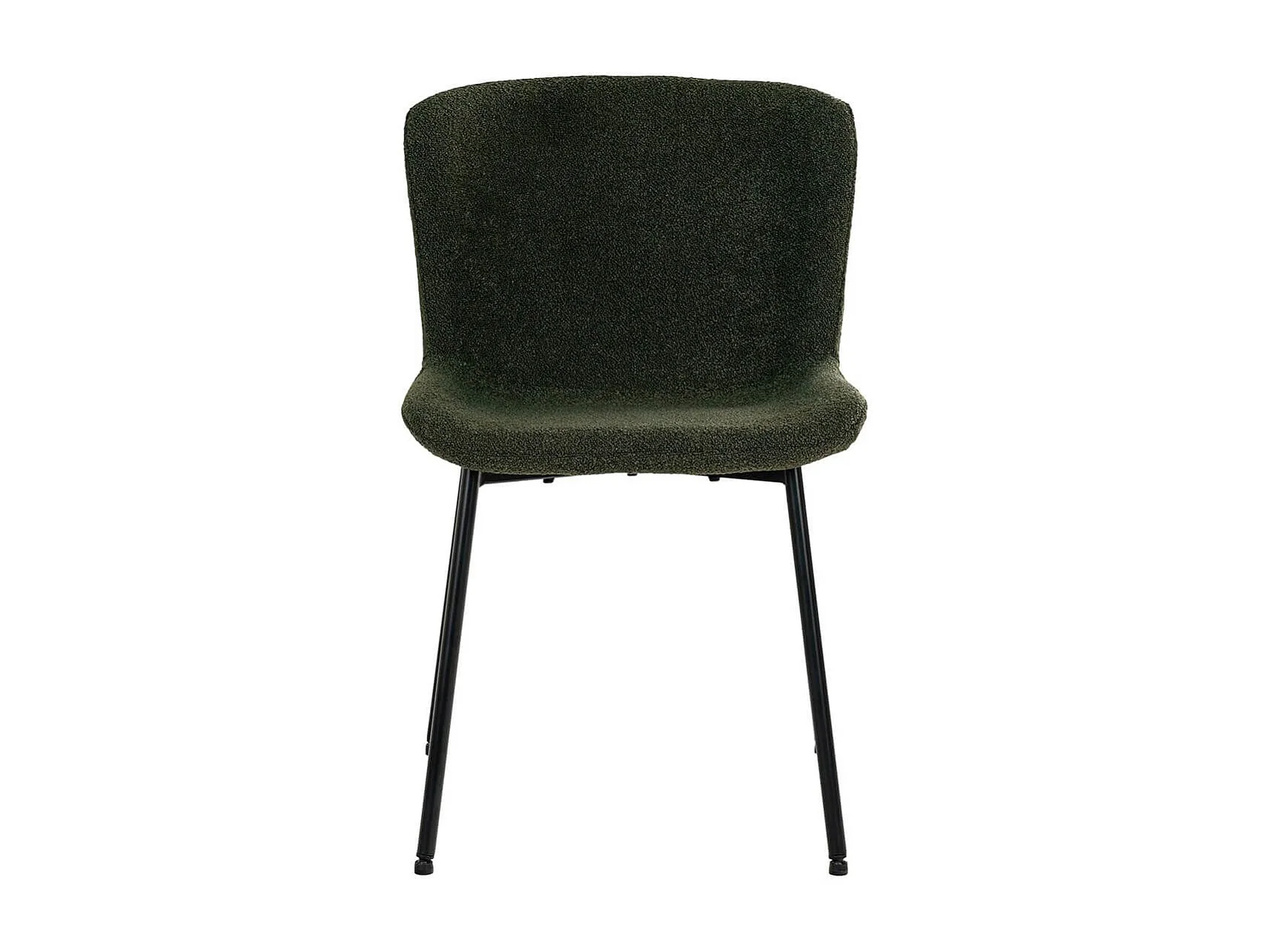 LESLI - Lot de 4 Chaises Tissu Bouclé Vert foncé Pieds Métal Noir