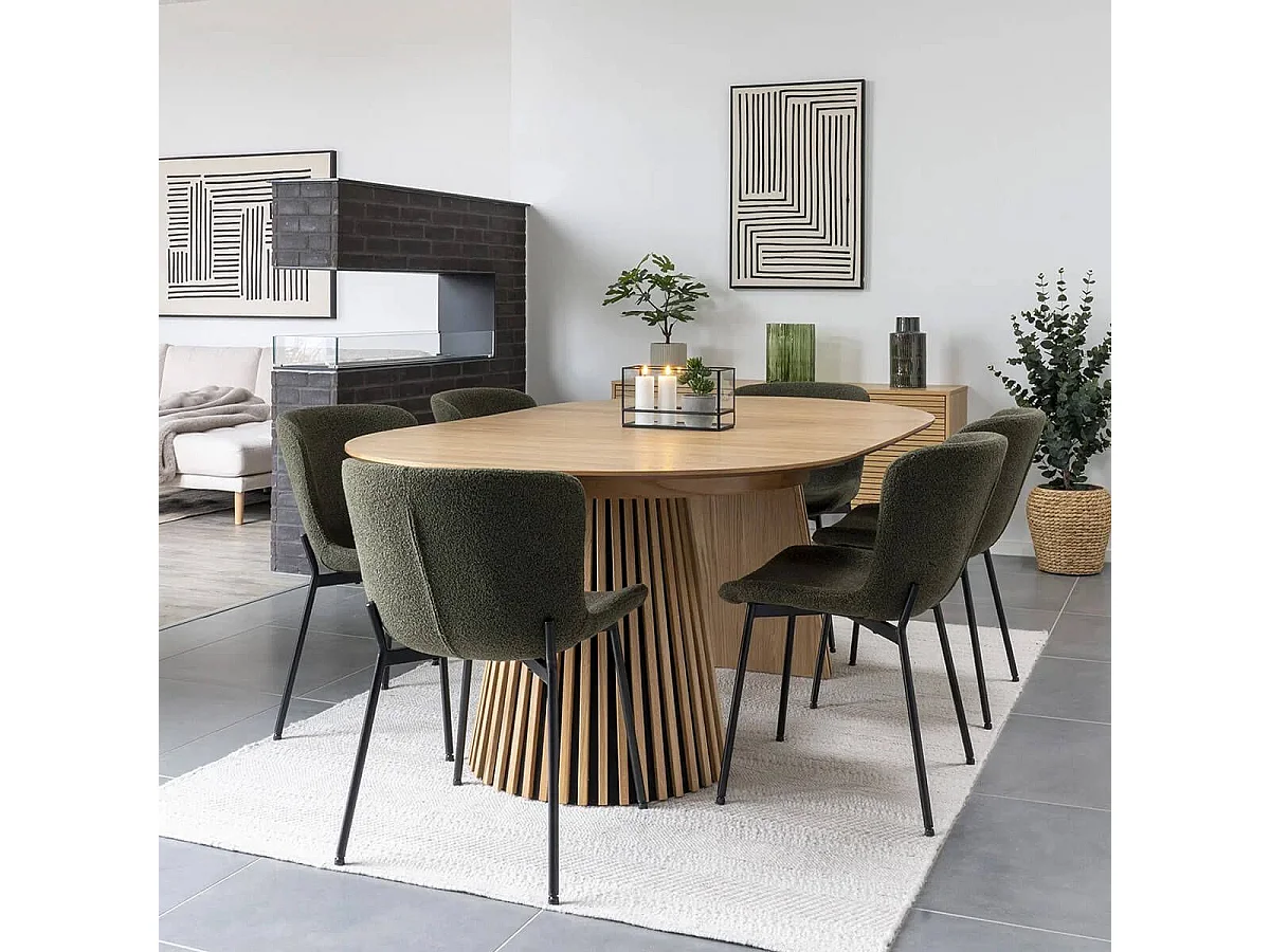 LESLI - Lot de 6 Chaises Tissu Bouclé Vert foncé Pieds Métal Noir
