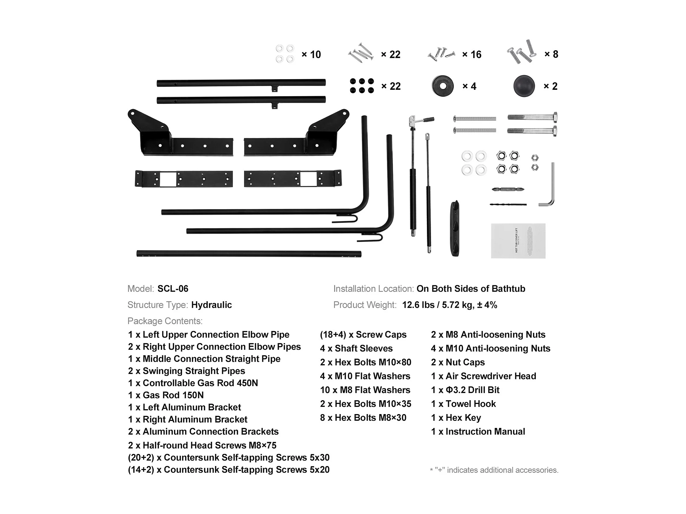 Lève-Couvercle de Spa SucceBuy, Hydraulique Monté sur le Dessus, Idéal pour de Nombreuses Baignoires