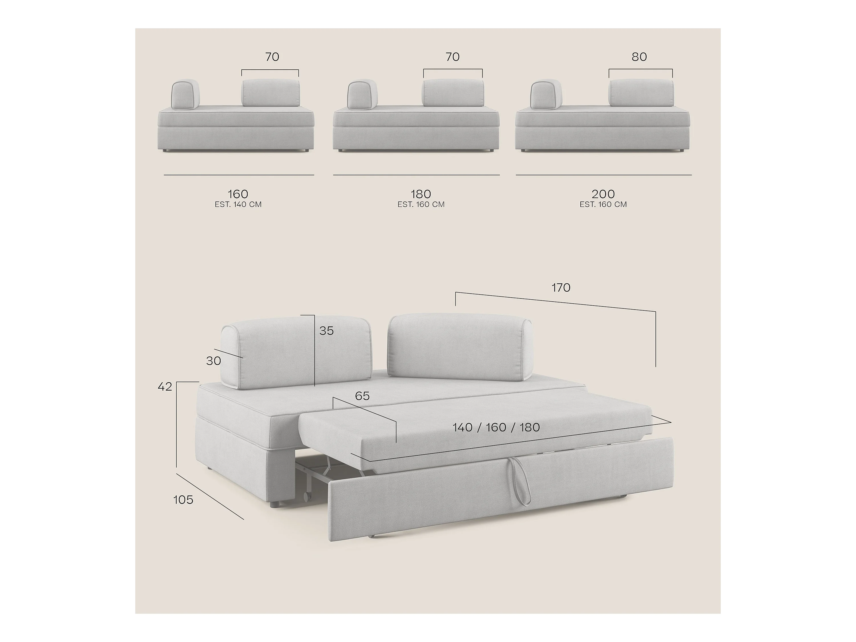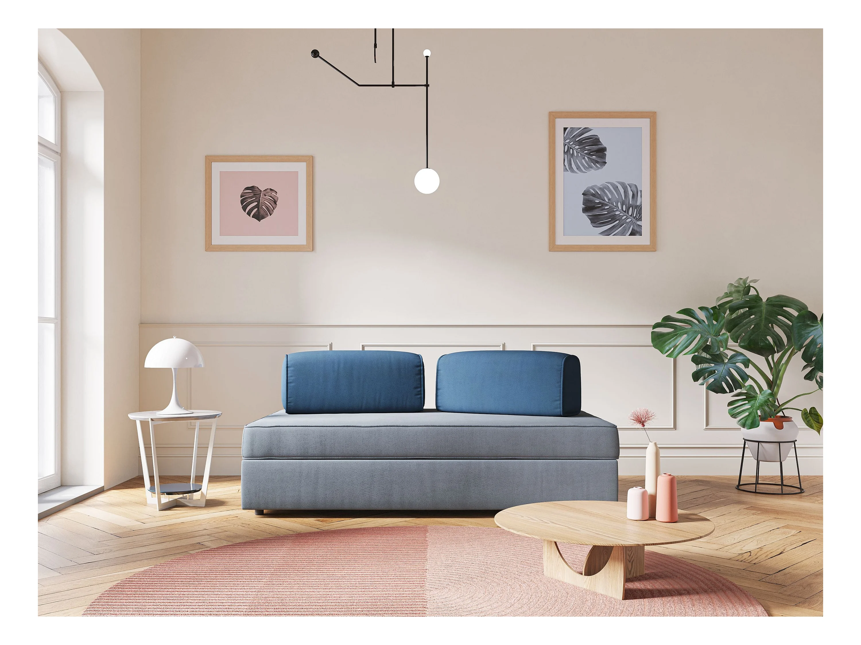 Liberty Canapé avec pouf amovible et dossier amovible en tissu imperméable T02 200 cm rose