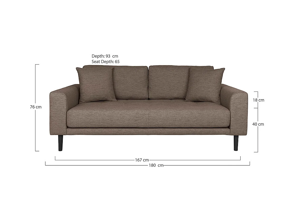 Lido canapé canapé 2,5 places avec deux coussins brun.