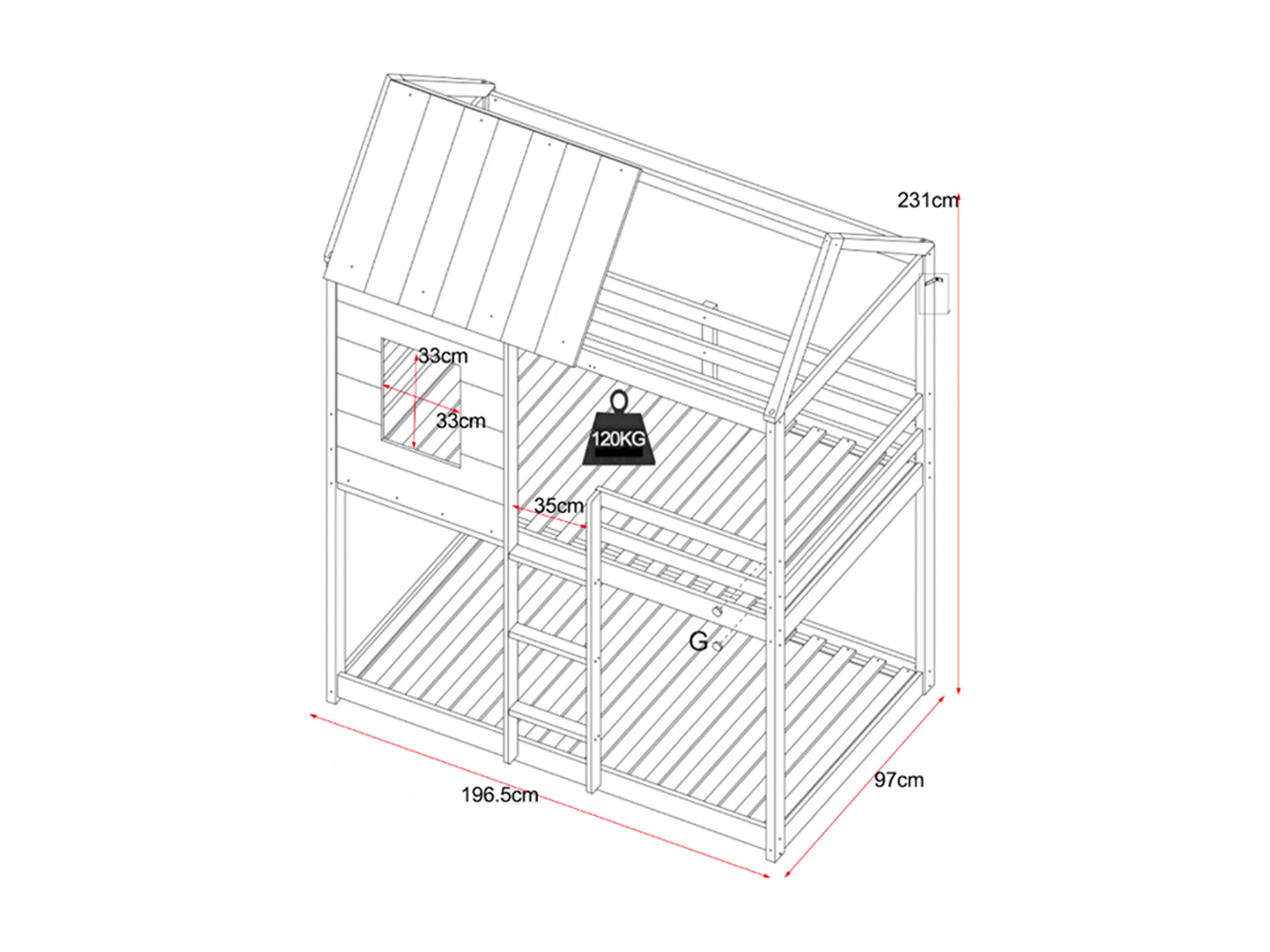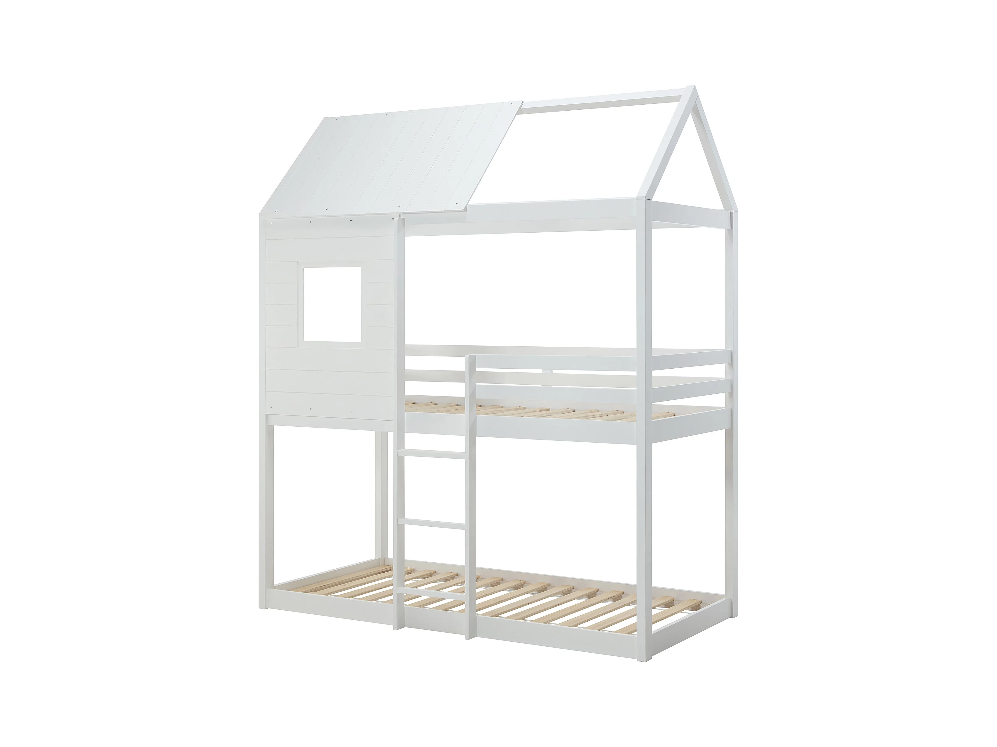 Lits superposés cabane 2 x 90 x 190 cm - Pin et MDF - Blanc - LIDOVARA