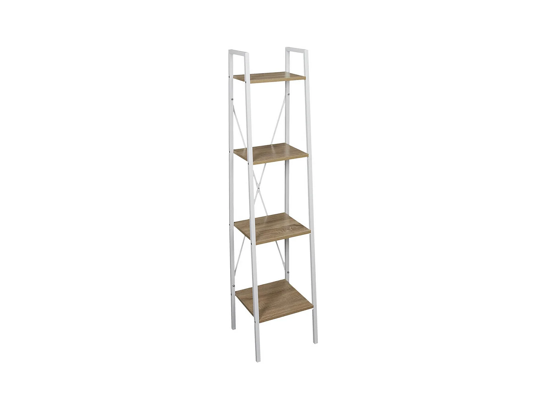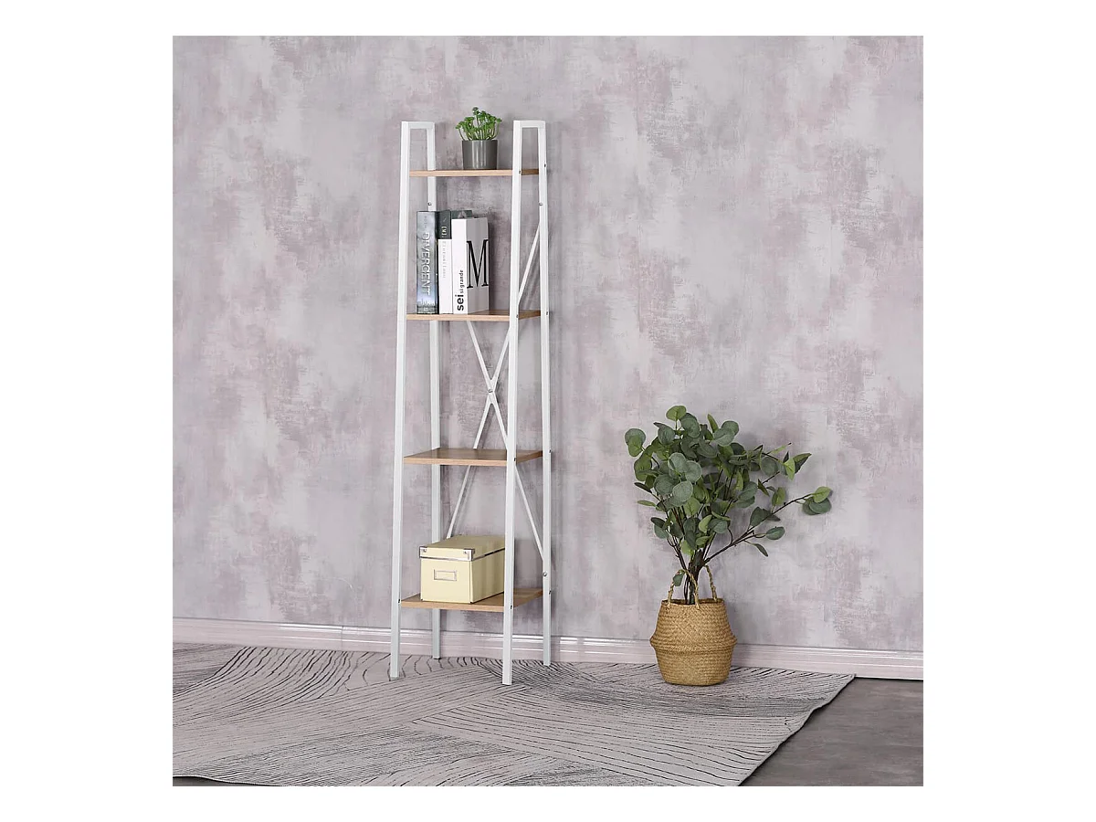 LIETA - Etagère Colonne à 4 Niveaux Bois et Métal Blanc