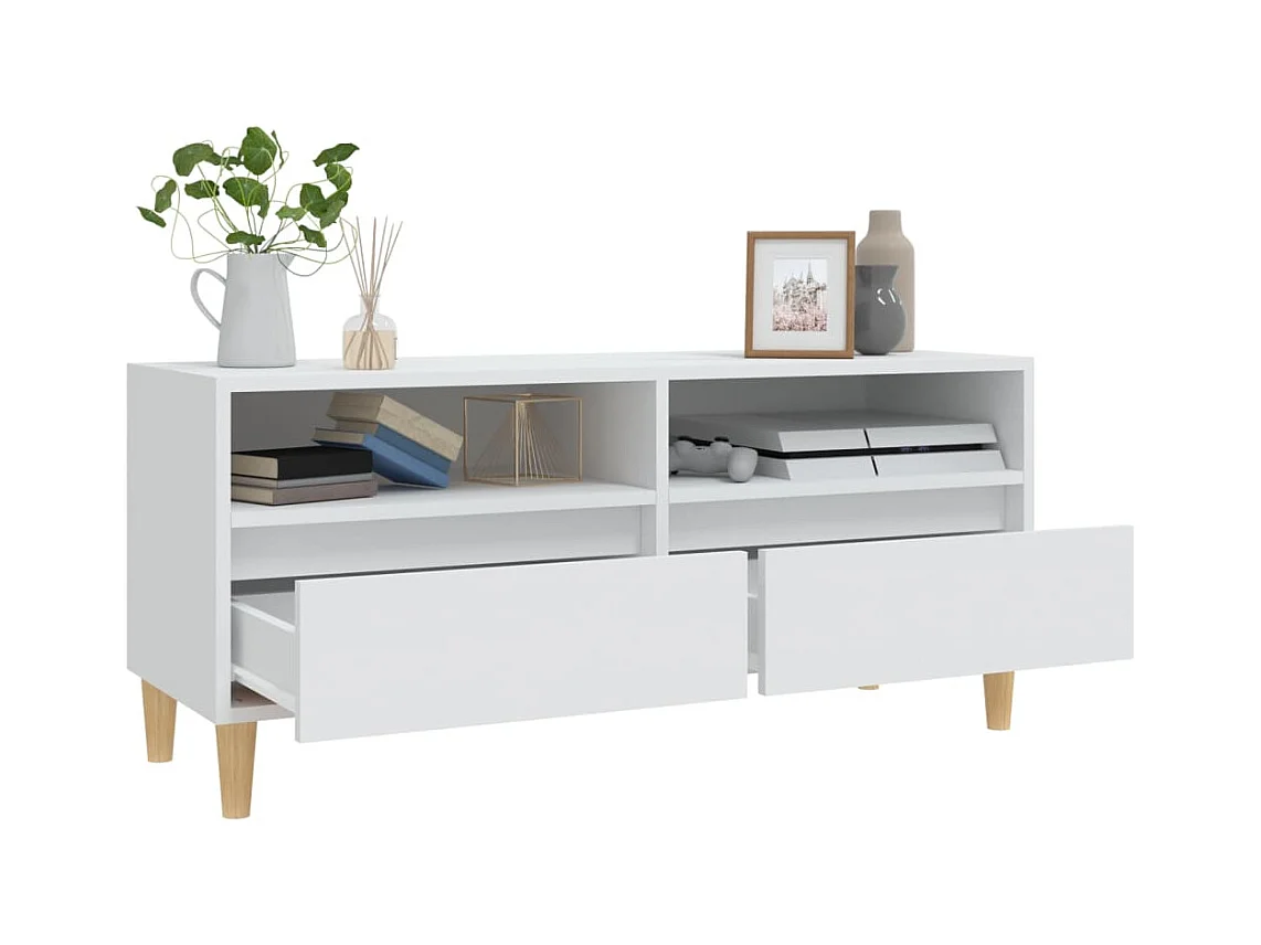 Lin Meuble TV blanc 100x34,5x44,5 cm bois d'ingénierie