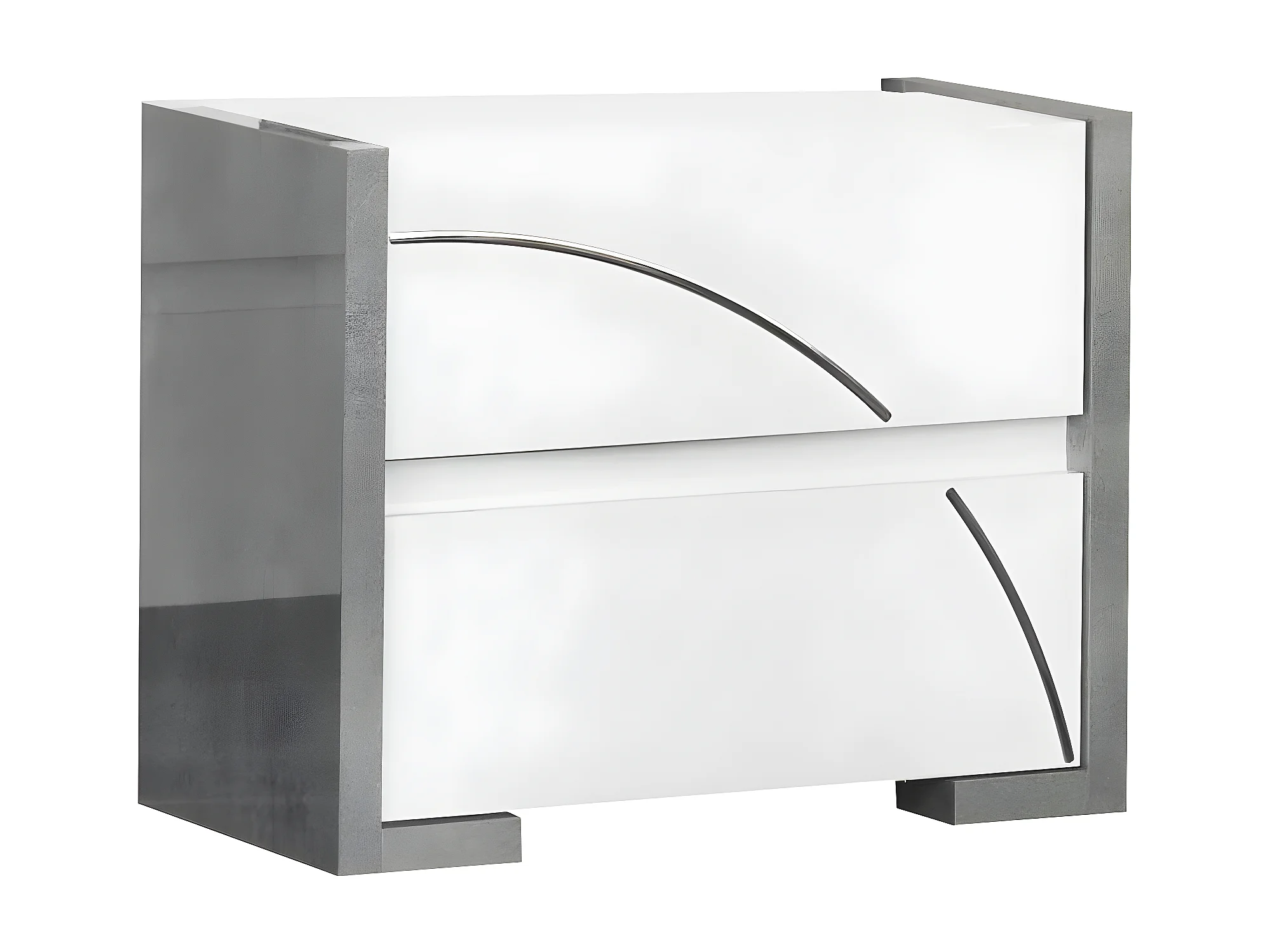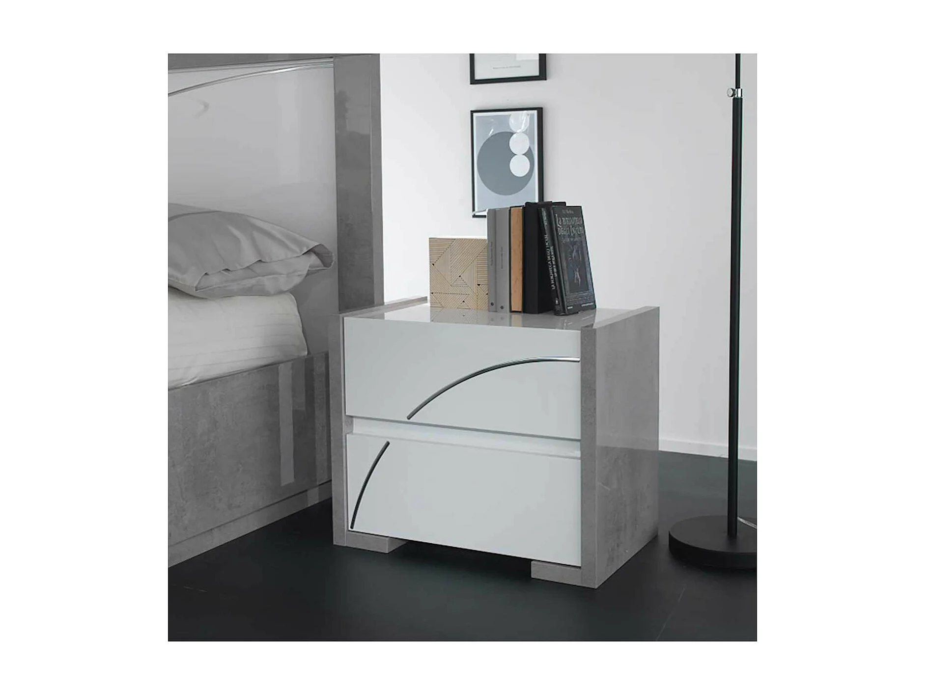 LINEAL - Chevet 2 Tiroirs Laqué Blanc et Gris Béton avec Détails Chromés