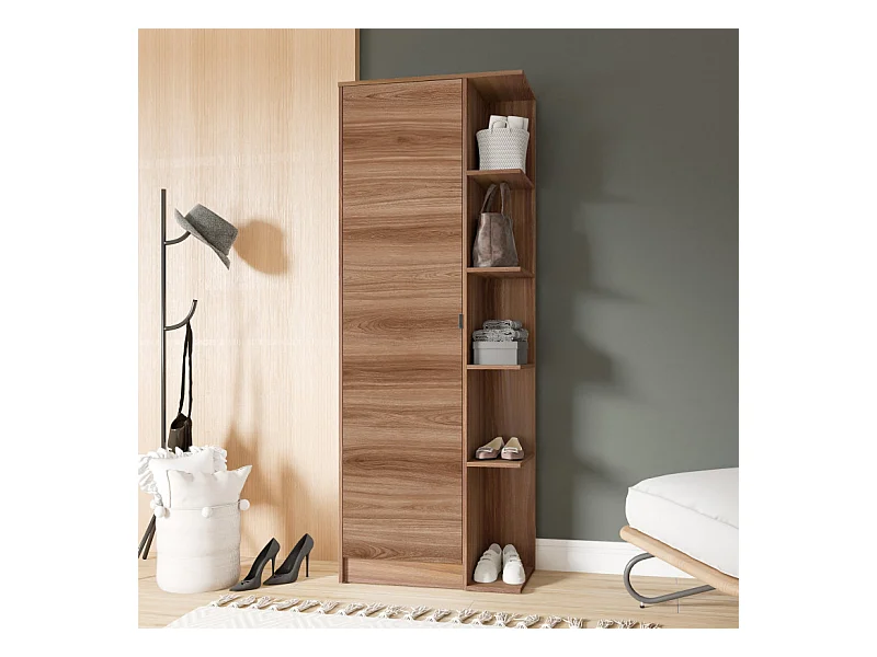 Lingère Meuble à Chaussures 15 Paires 1 Porte 10 Niches Châtaignier