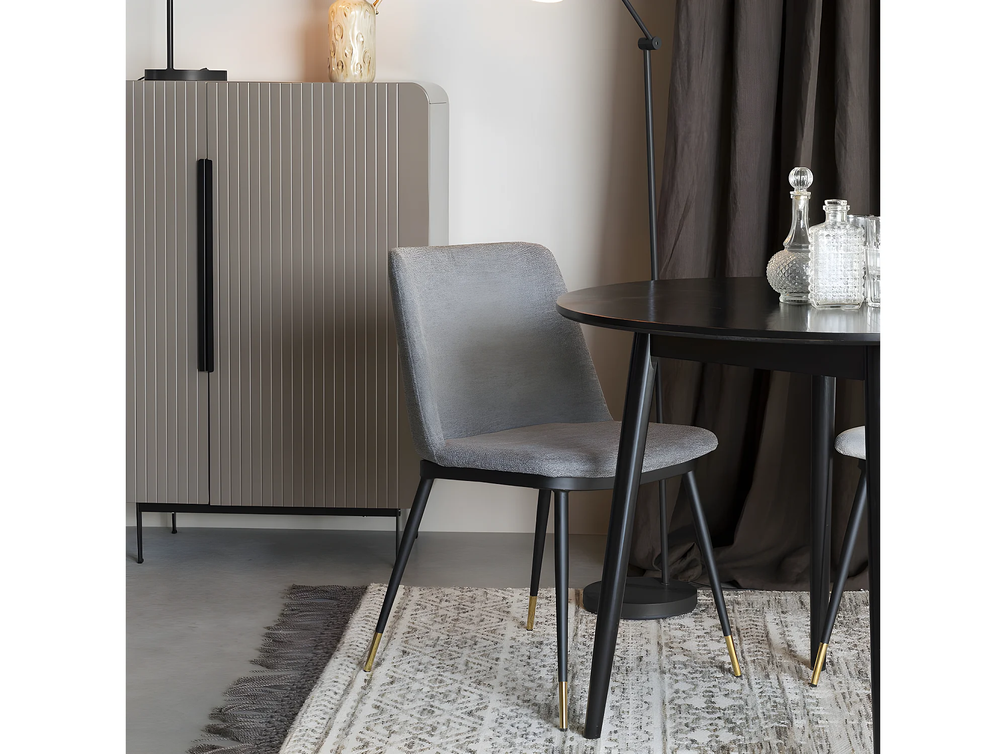 Lionel - Lot de 2 chaises en tissu et métal - Couleur - Gris