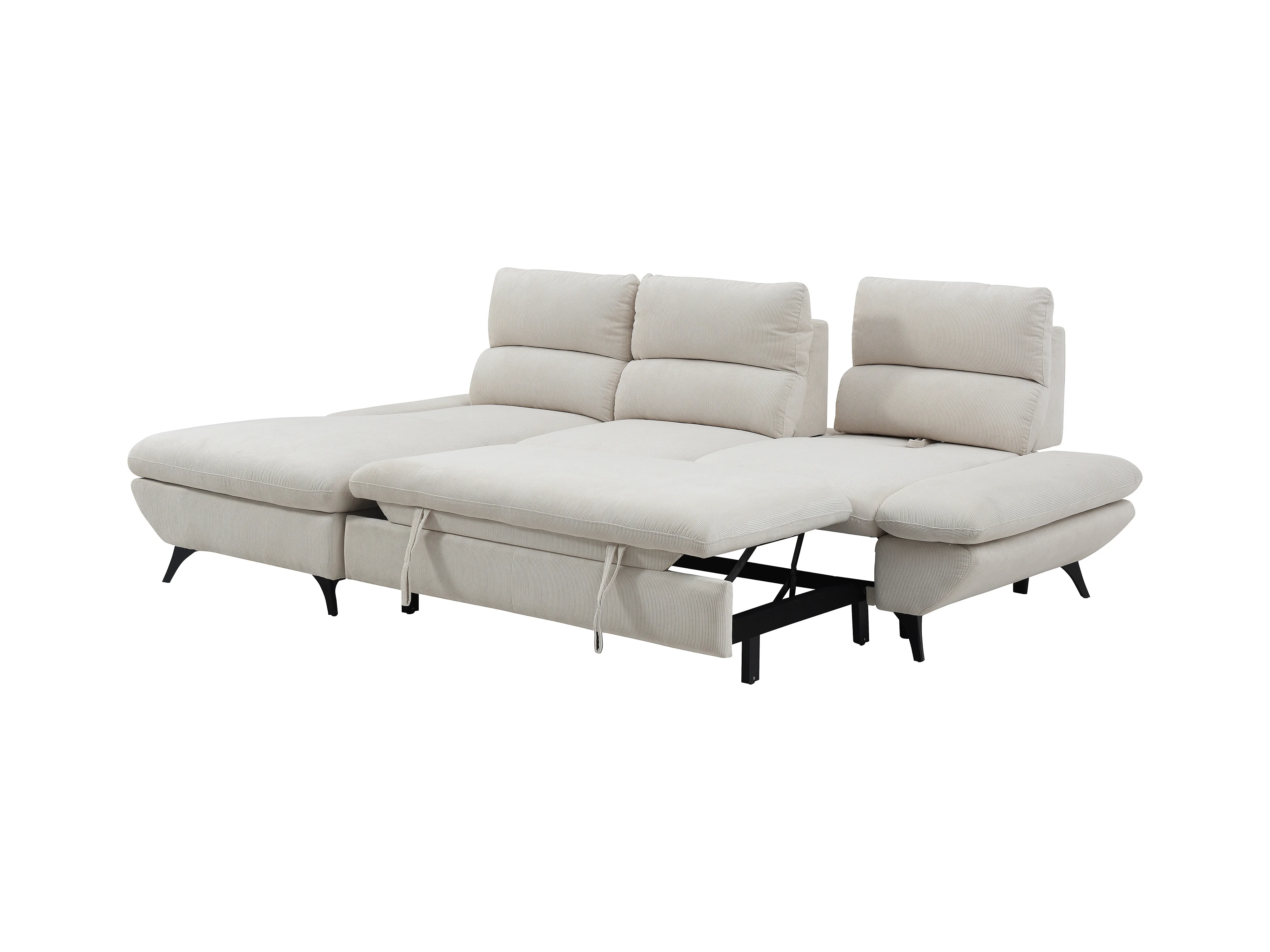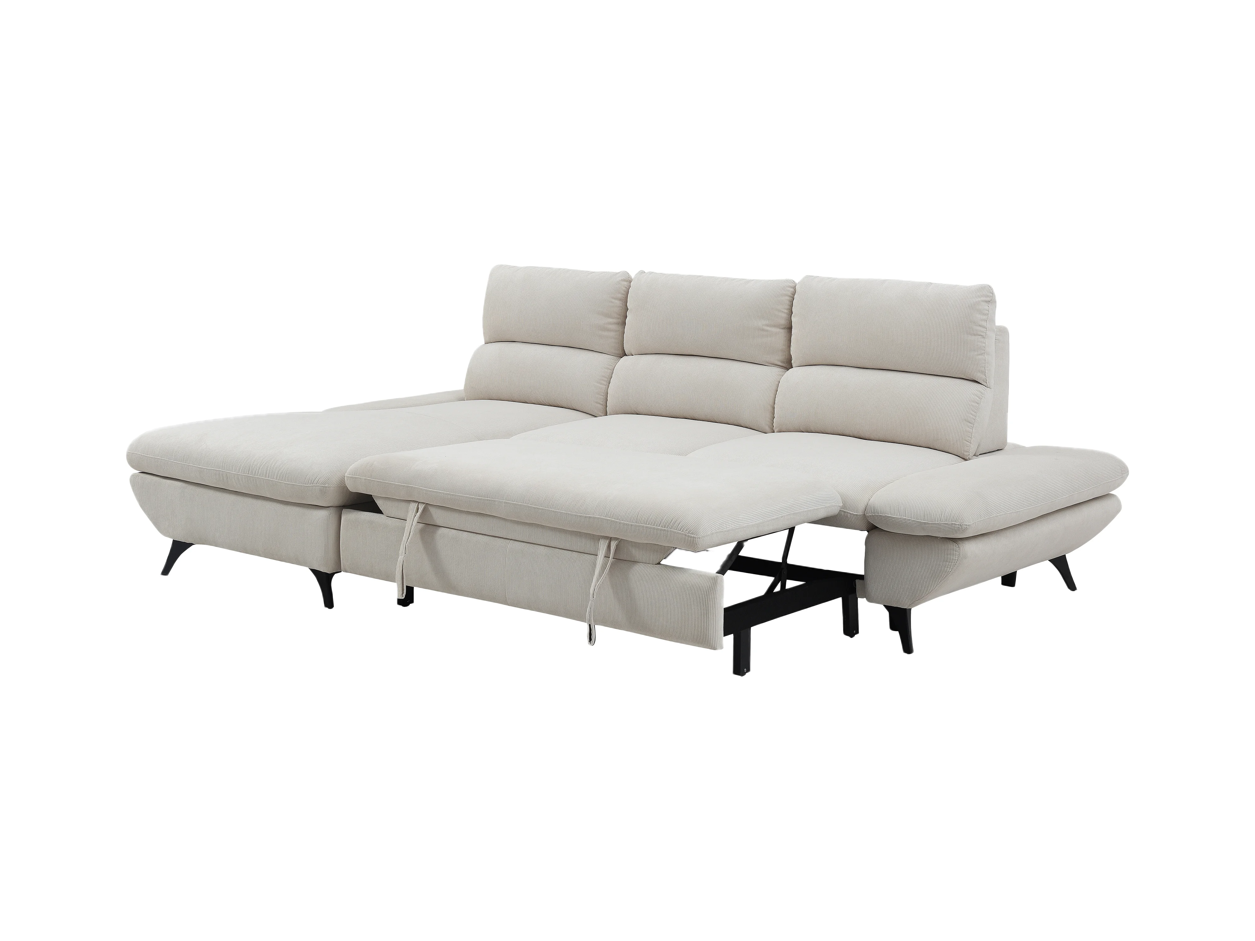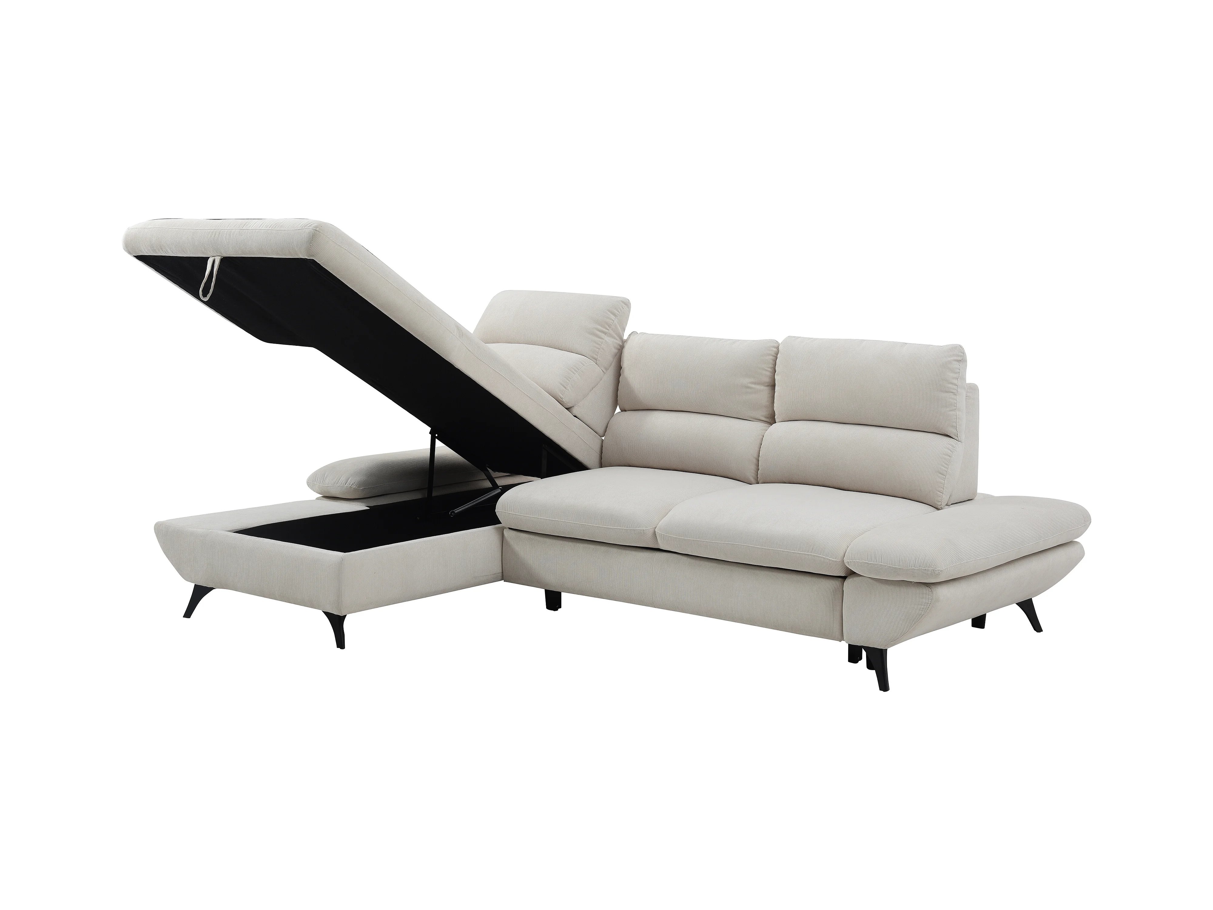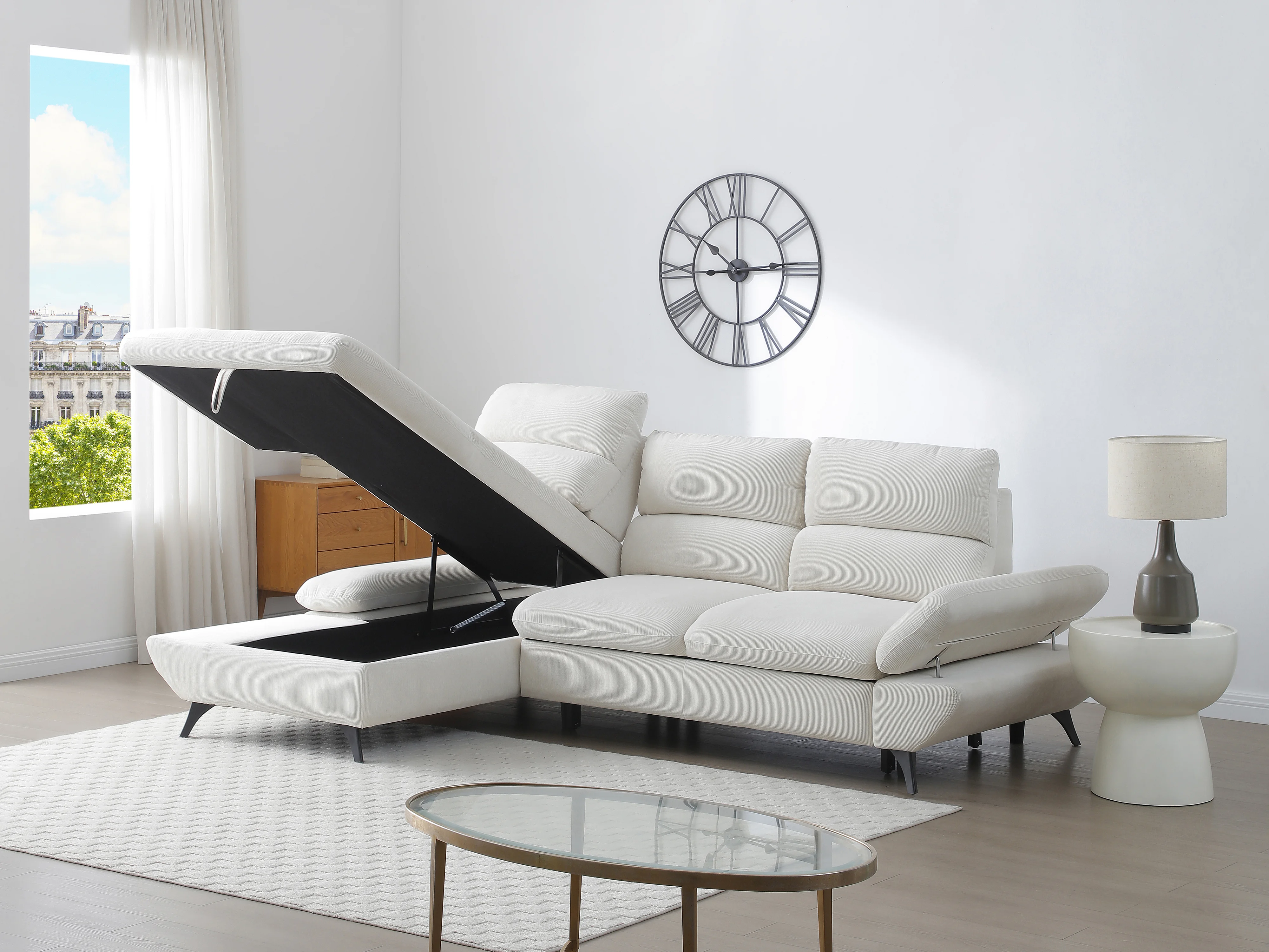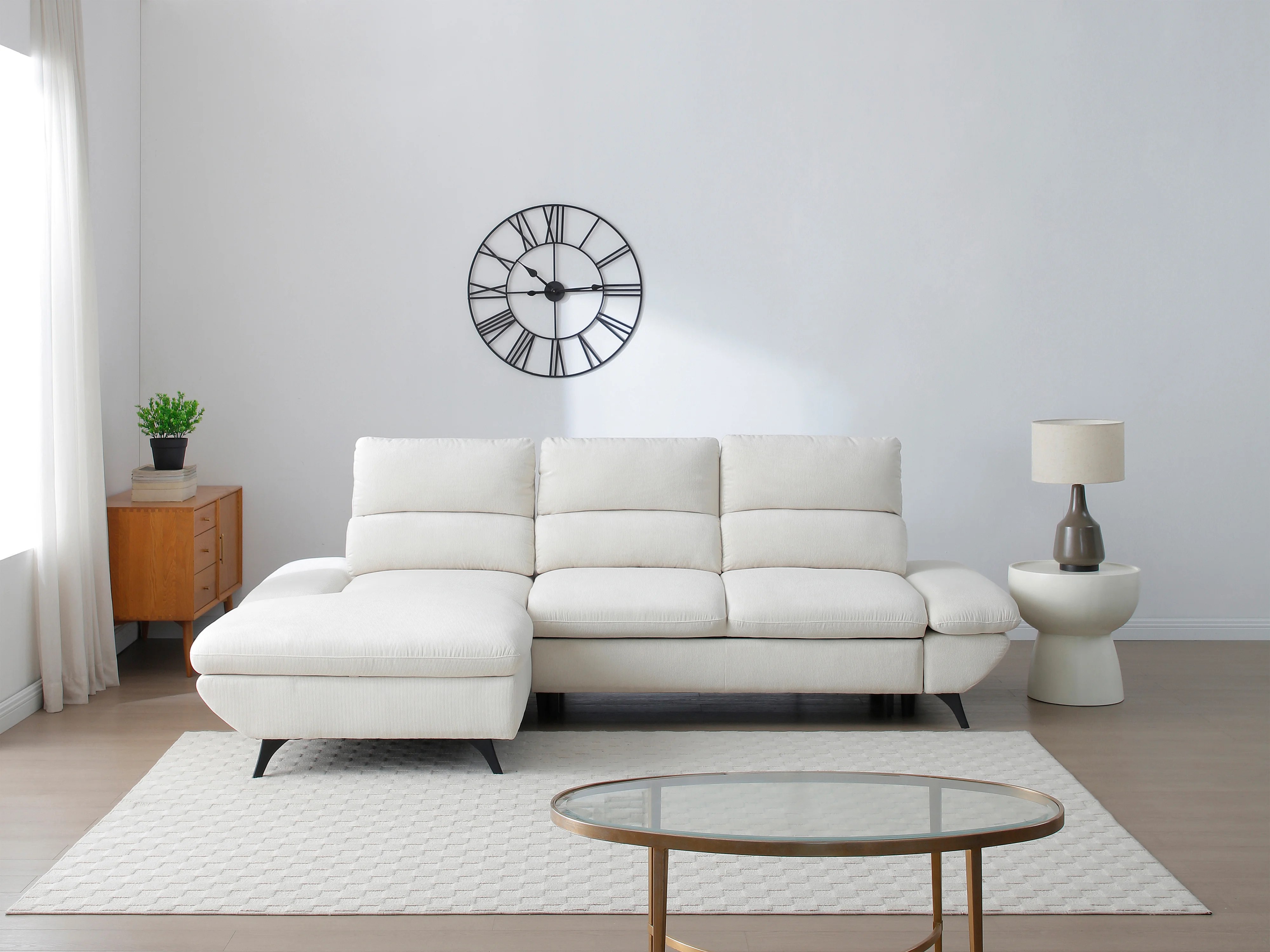 Canapé d'angle gauche convertible dossier avance-recule en velours côtelé beige LIORI
