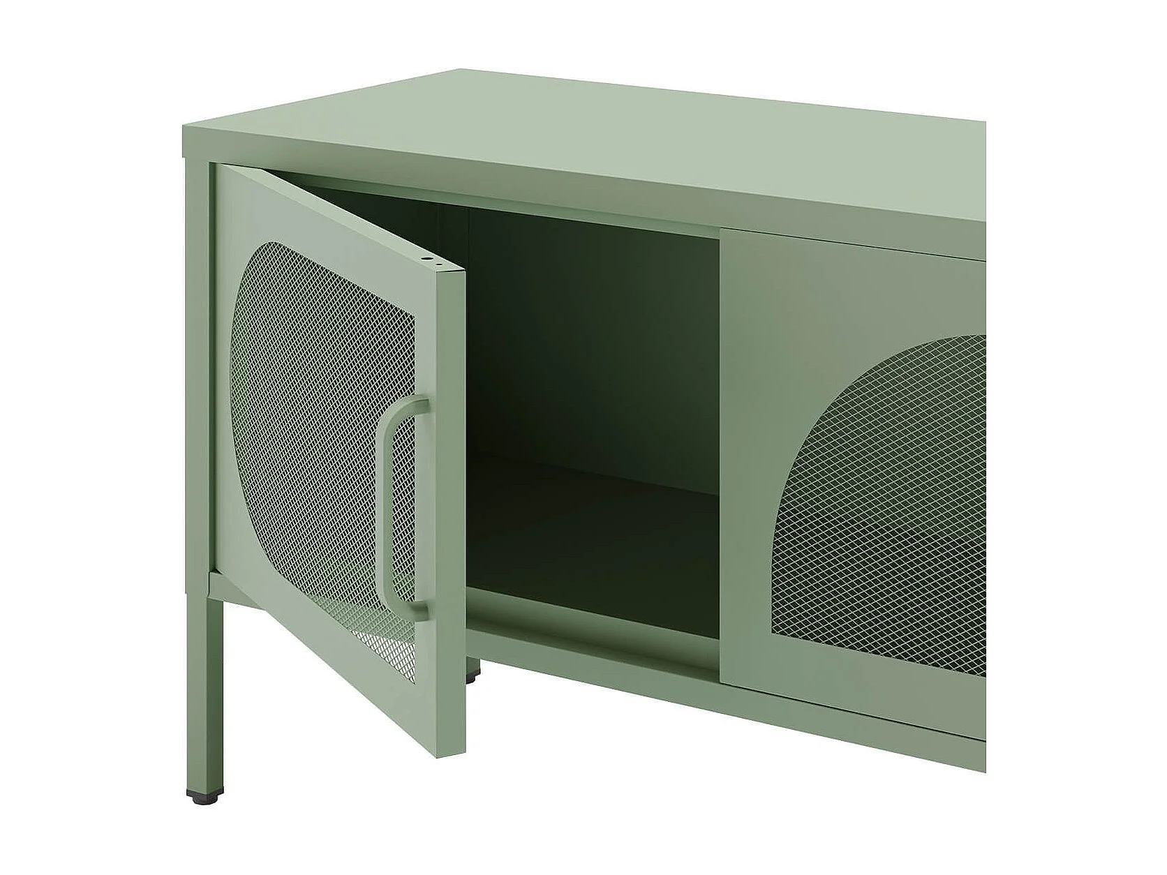 LIOVIA - Meuble TV 180 cm 4 Portes Ajourées en Métal Vert Menthe