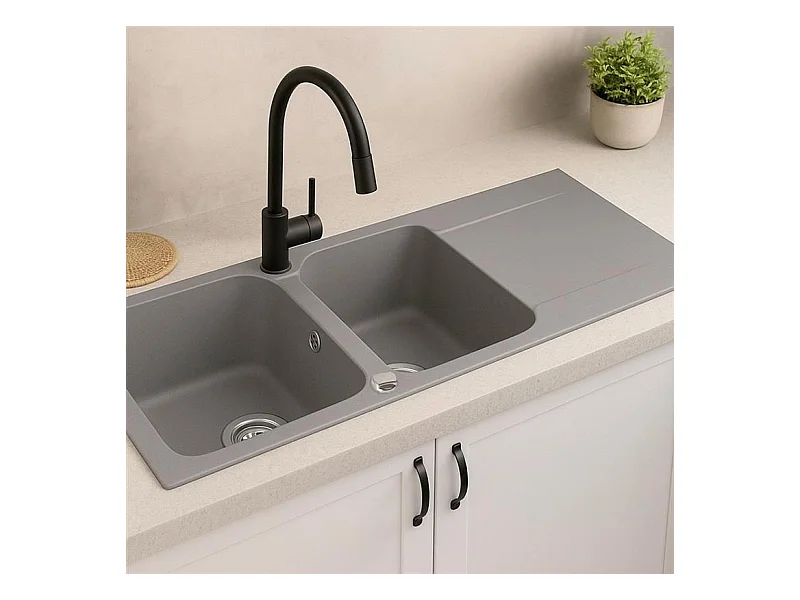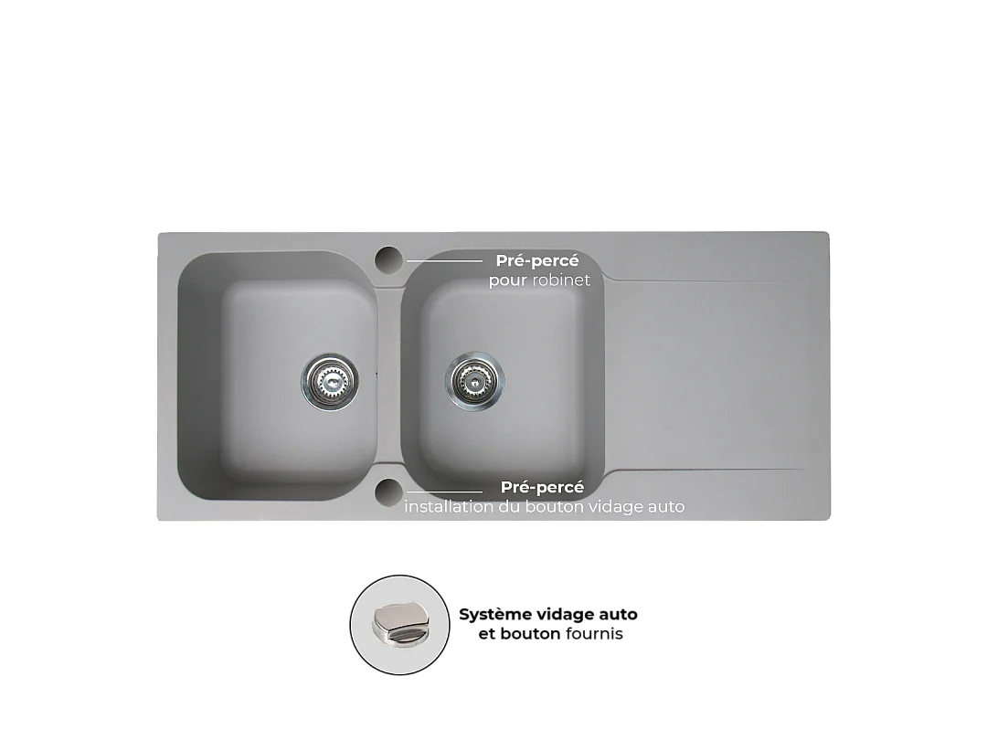 Lisse évier réversible 2 cuves 1 égouttoir en résine gris - Essebagno