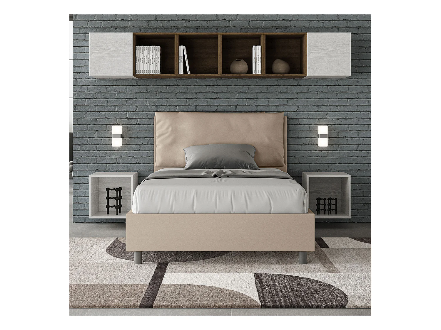 Lit 1 place et demi coffre rembourré 120x210 similicuir taupe Antea Large