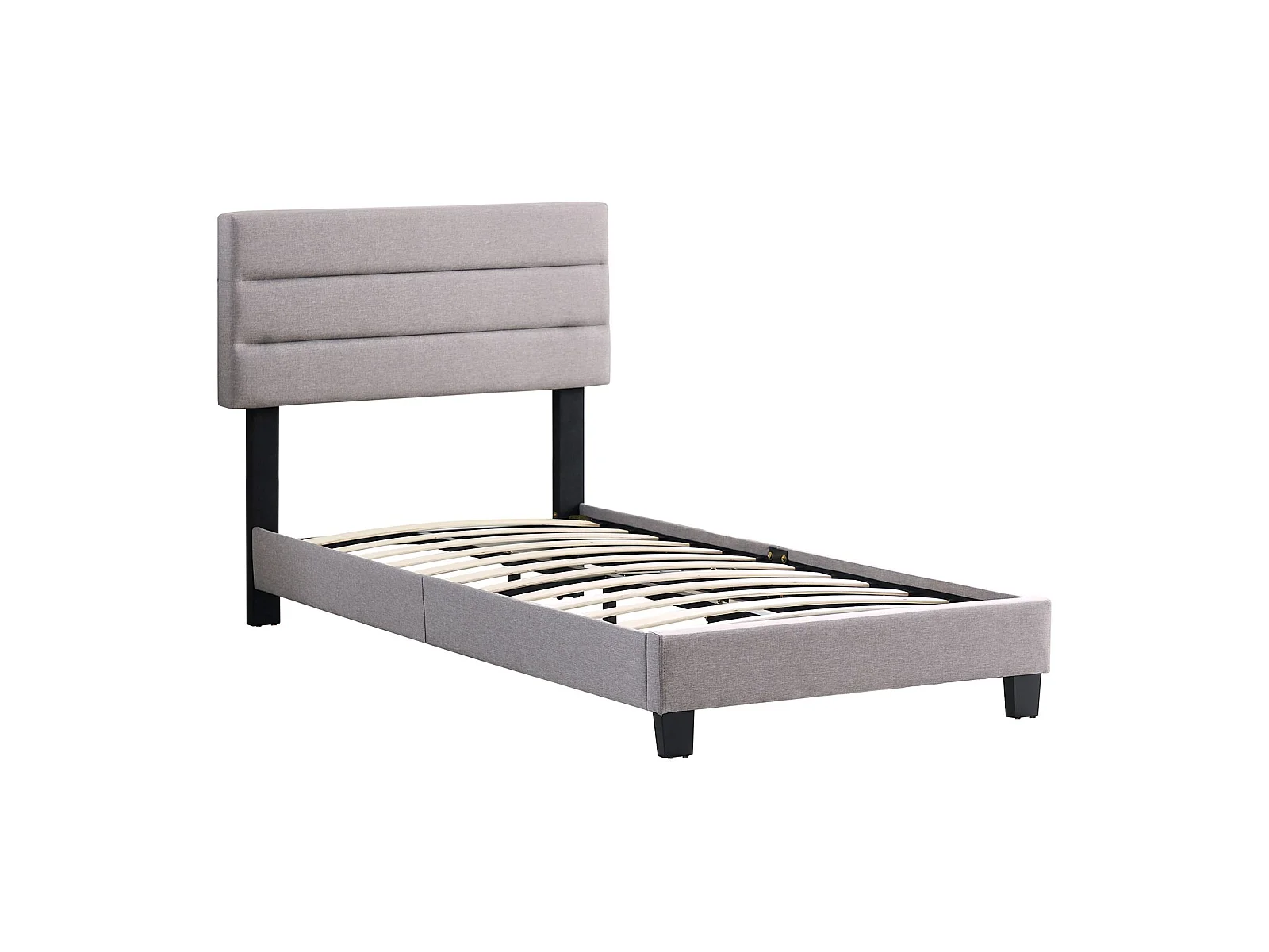Lit 1 place FLORIDA 90x190 cm avec sommier, lit simple pour enfant ou adulte, hauteur réglable, lit en tissu gris