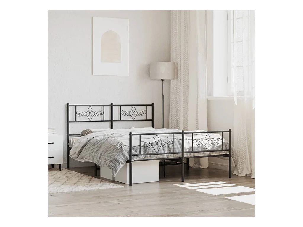 Lit double métal + tête de lit/pied de lit noir 120x190 cm FR65338