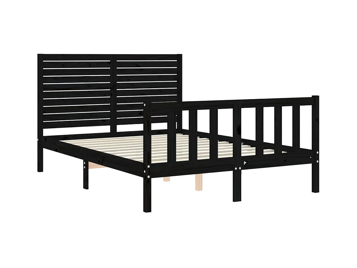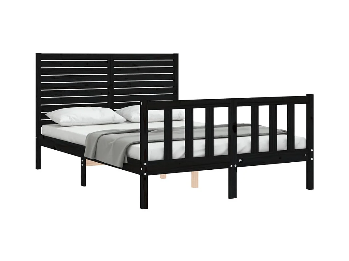 Lit-135x190 cm avec tête de lit noir double bois massif EGGB47798