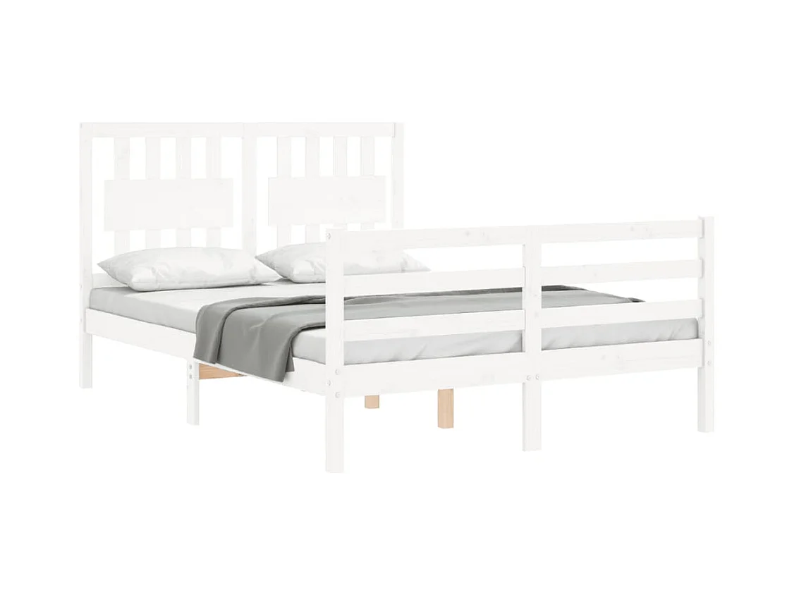 Lit-135x190 cm + tête de lit blanc double bois massif HOQW21681
