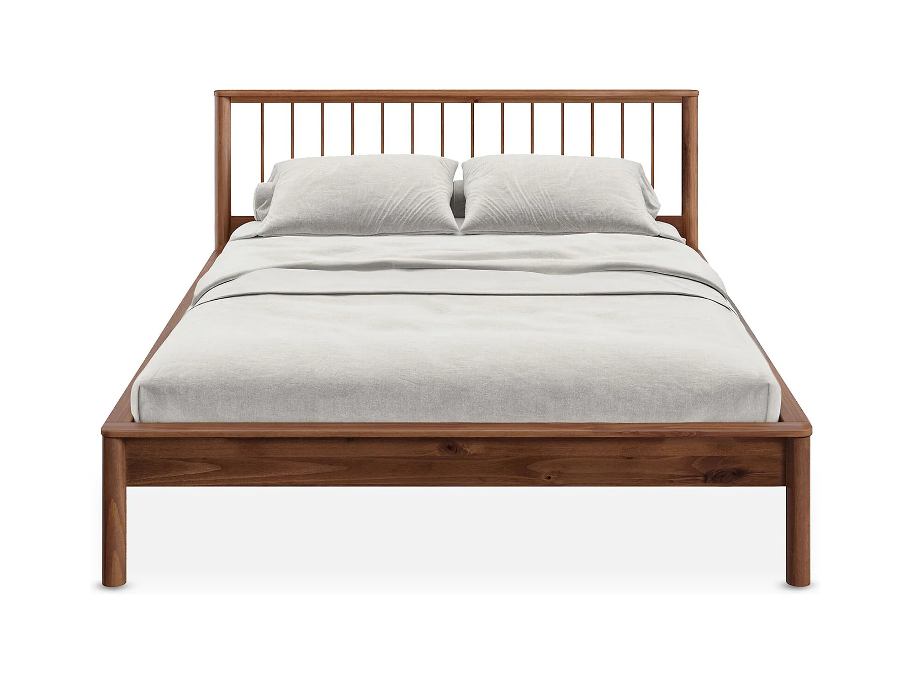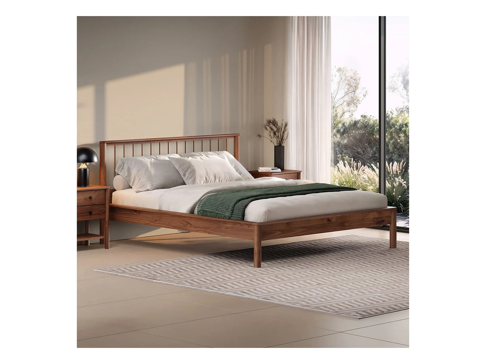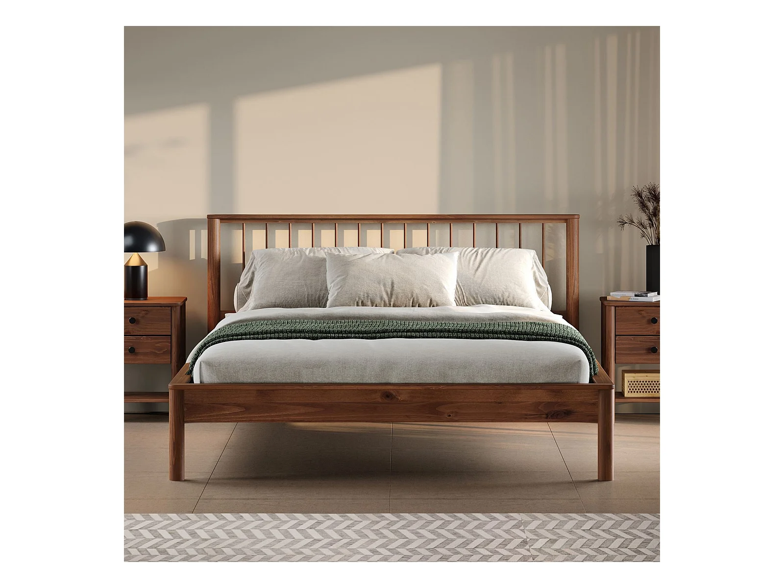 Lit 140 x 190 avec sommier APOANA en bois massif coloris châtaignier, cadre robuste avec tête de lit à barreaux