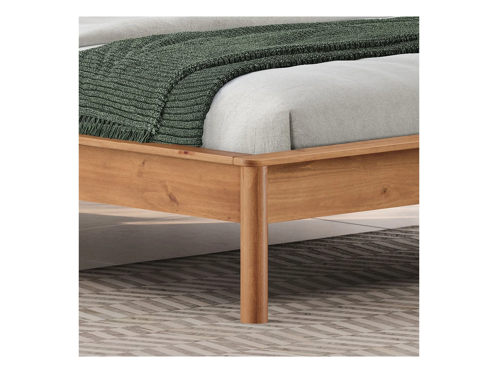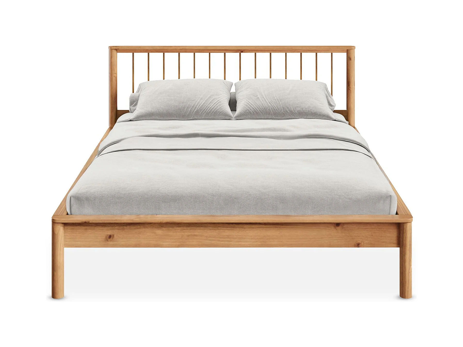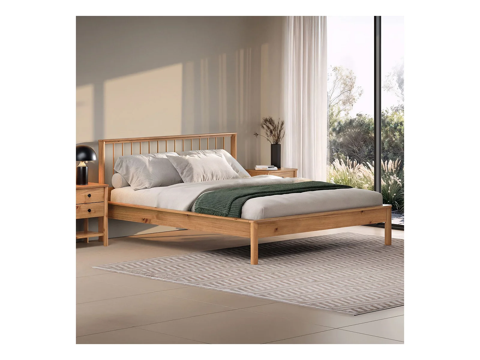 Lit 140 x 190 avec sommier APOANA en bois massif coloris chêne, cadre robuste avec tête de lit à barreaux