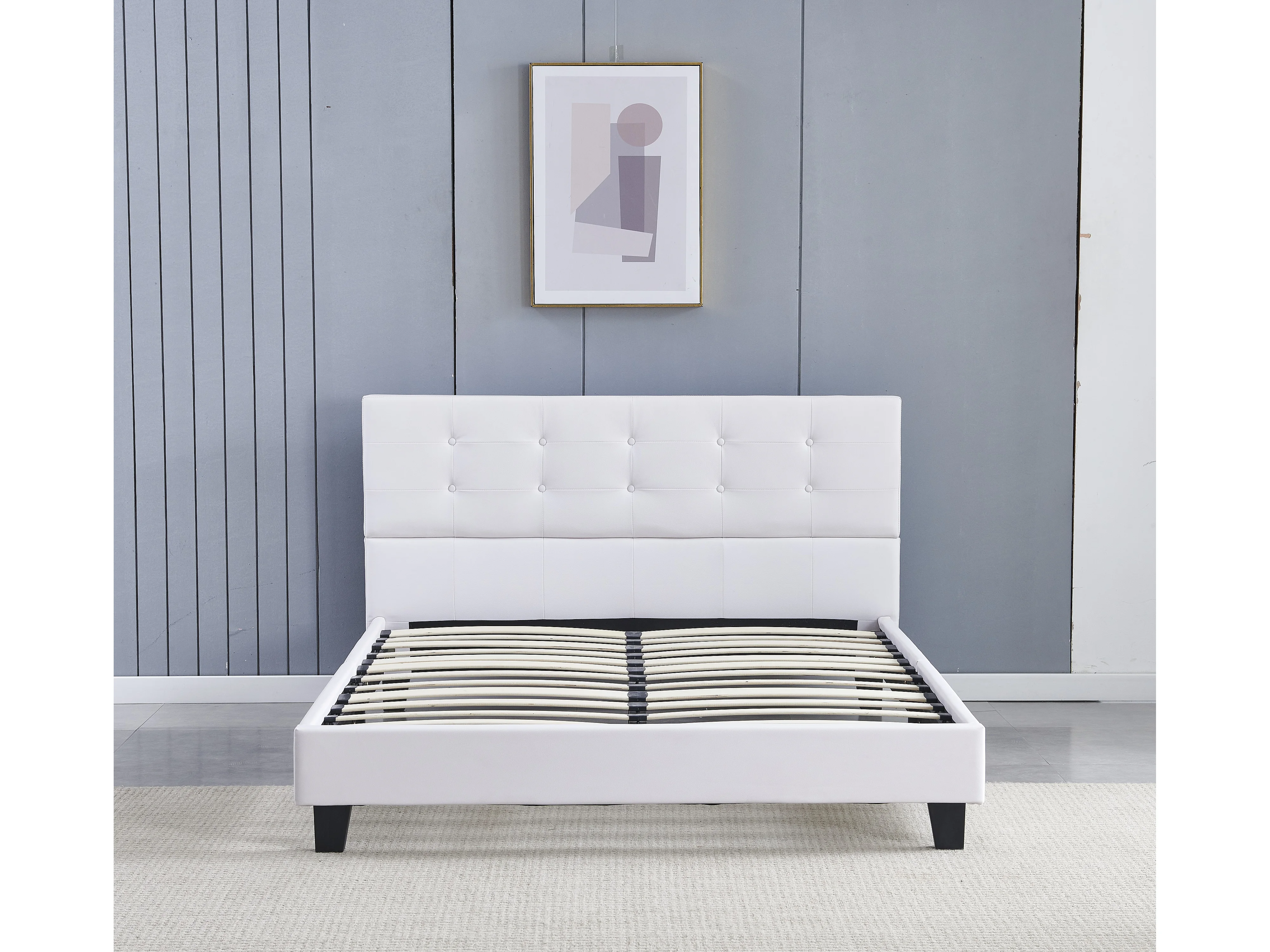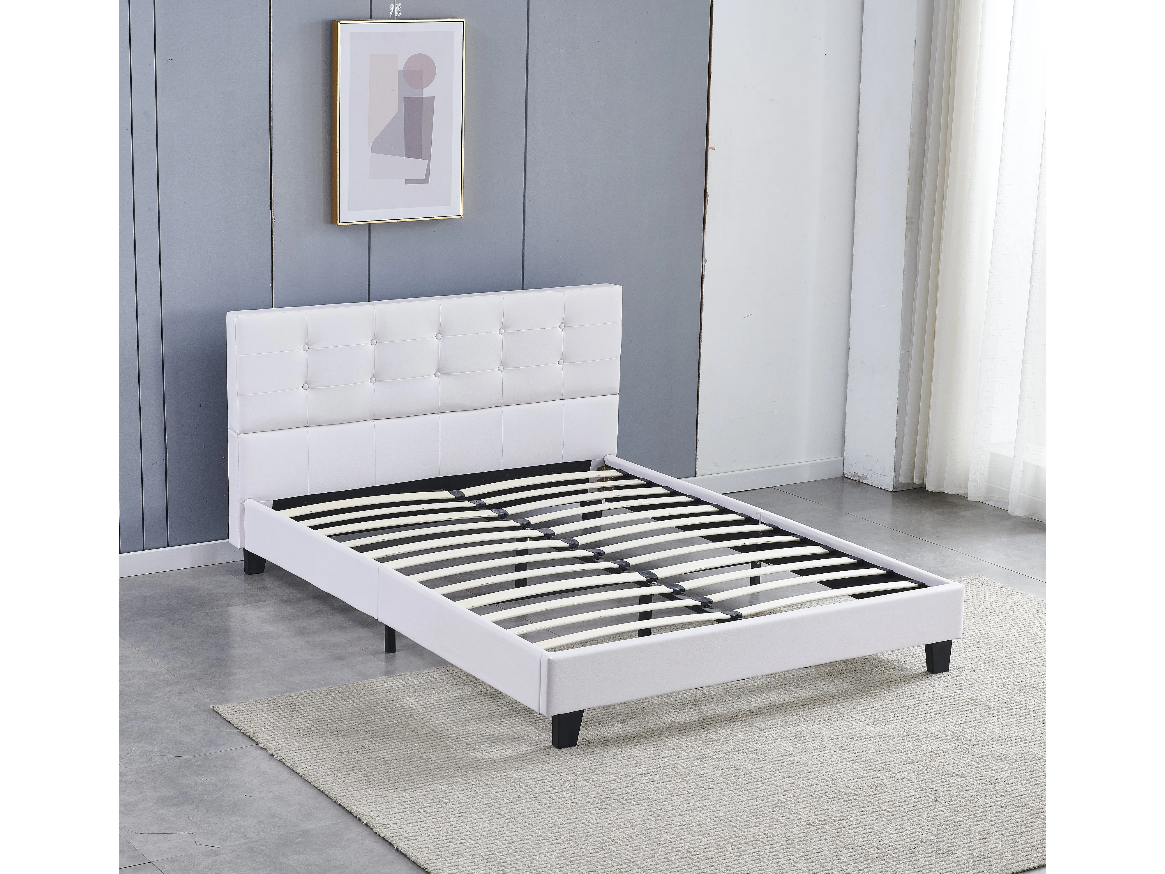 Lit 140x190 cm avec tête de lit similicuir couleur blanc