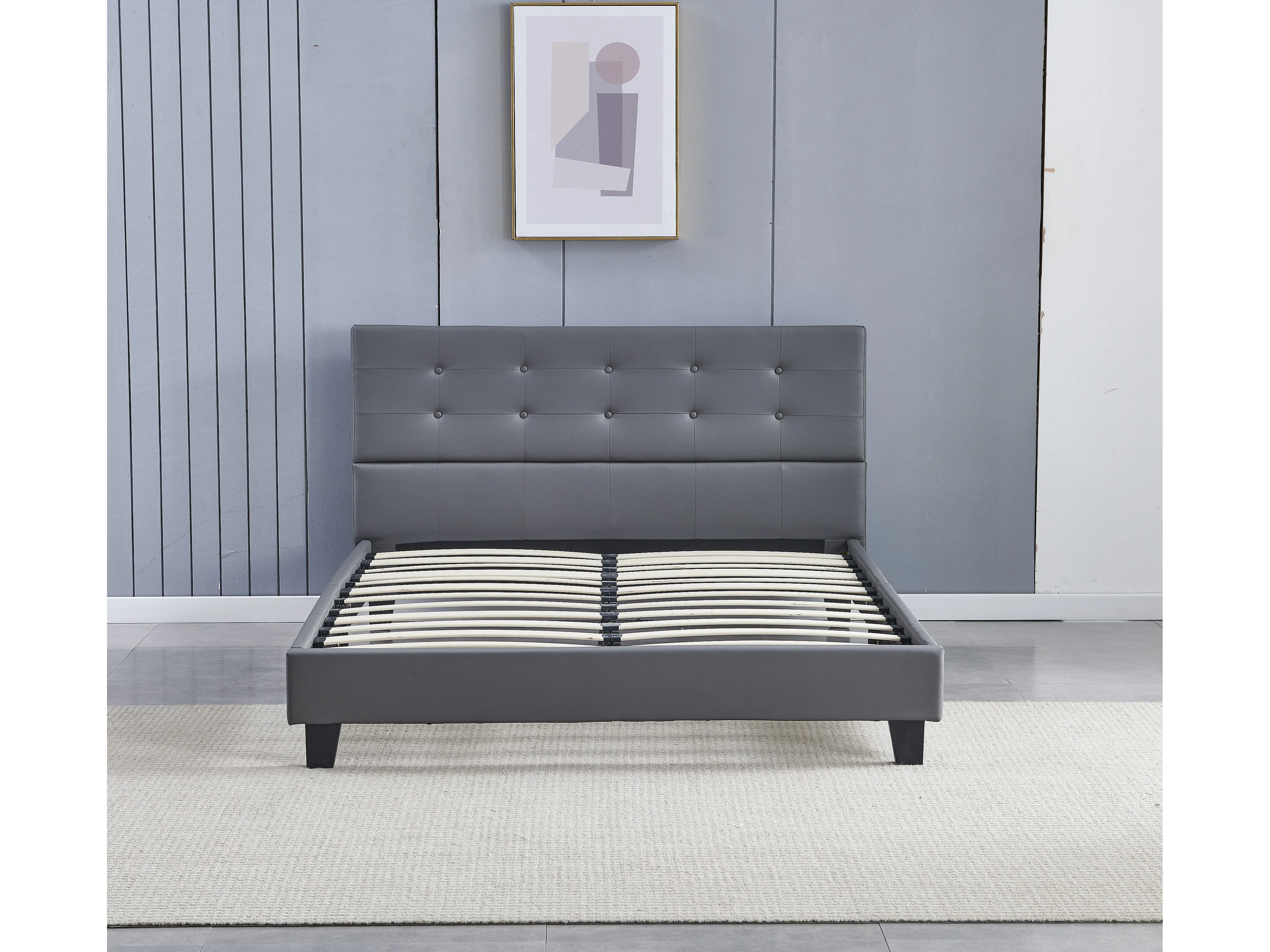 Lit 140x190 cm avec tête de lit similicuir couleur gris