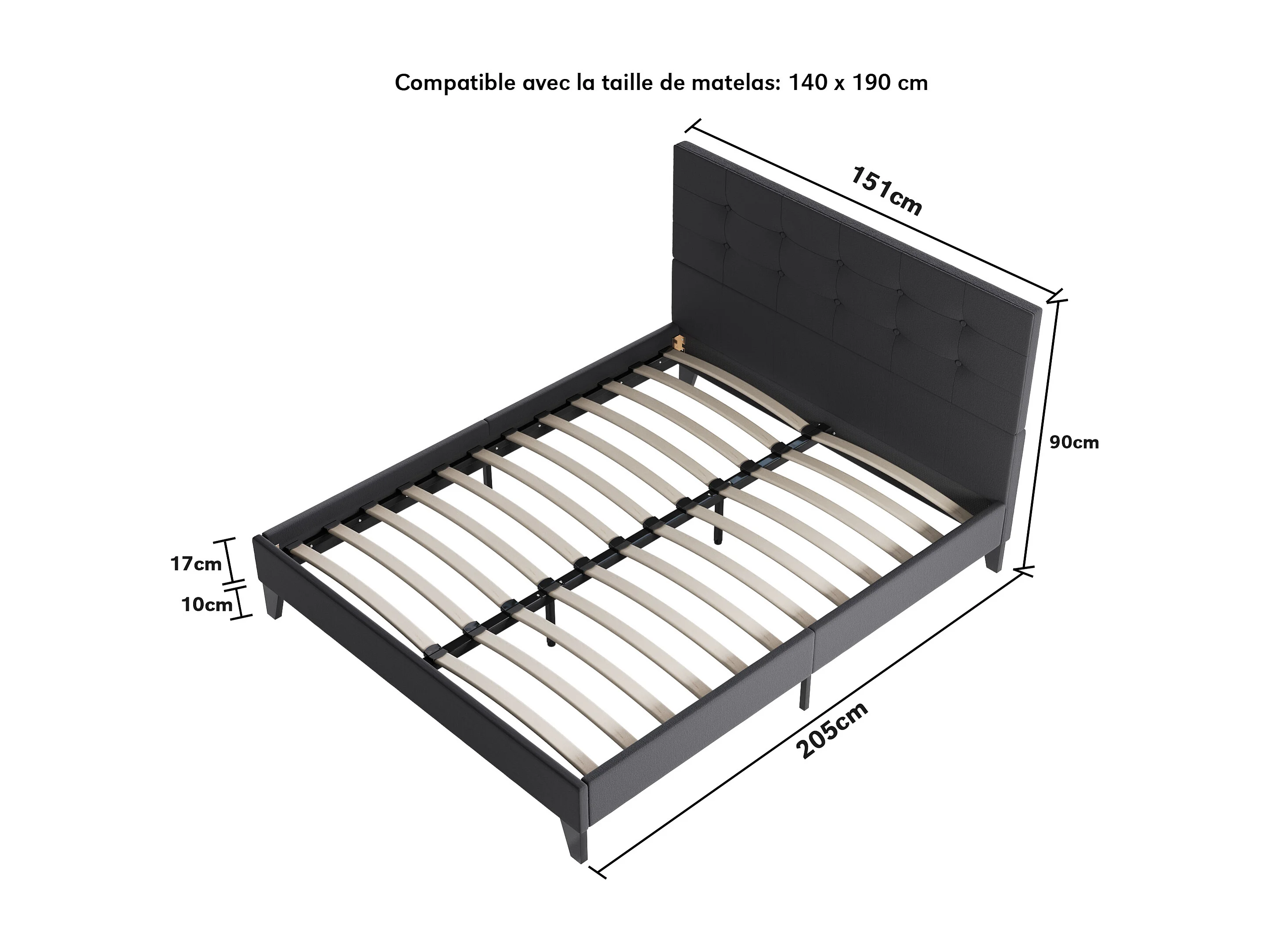 Lit 140x190 cm avec tête de lit tissu couleur noir