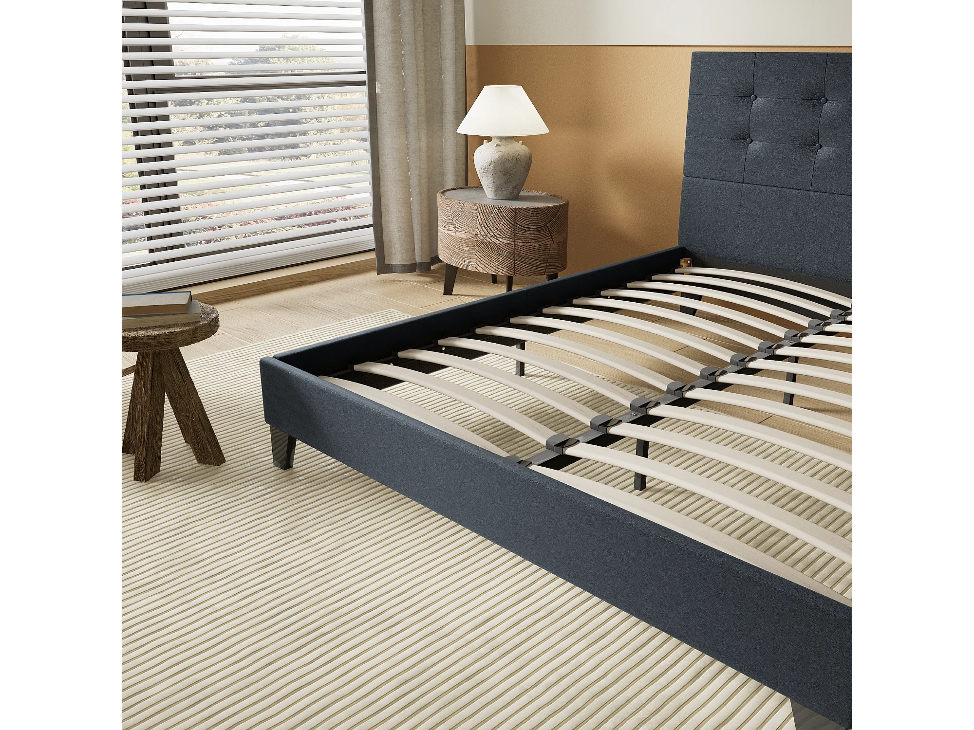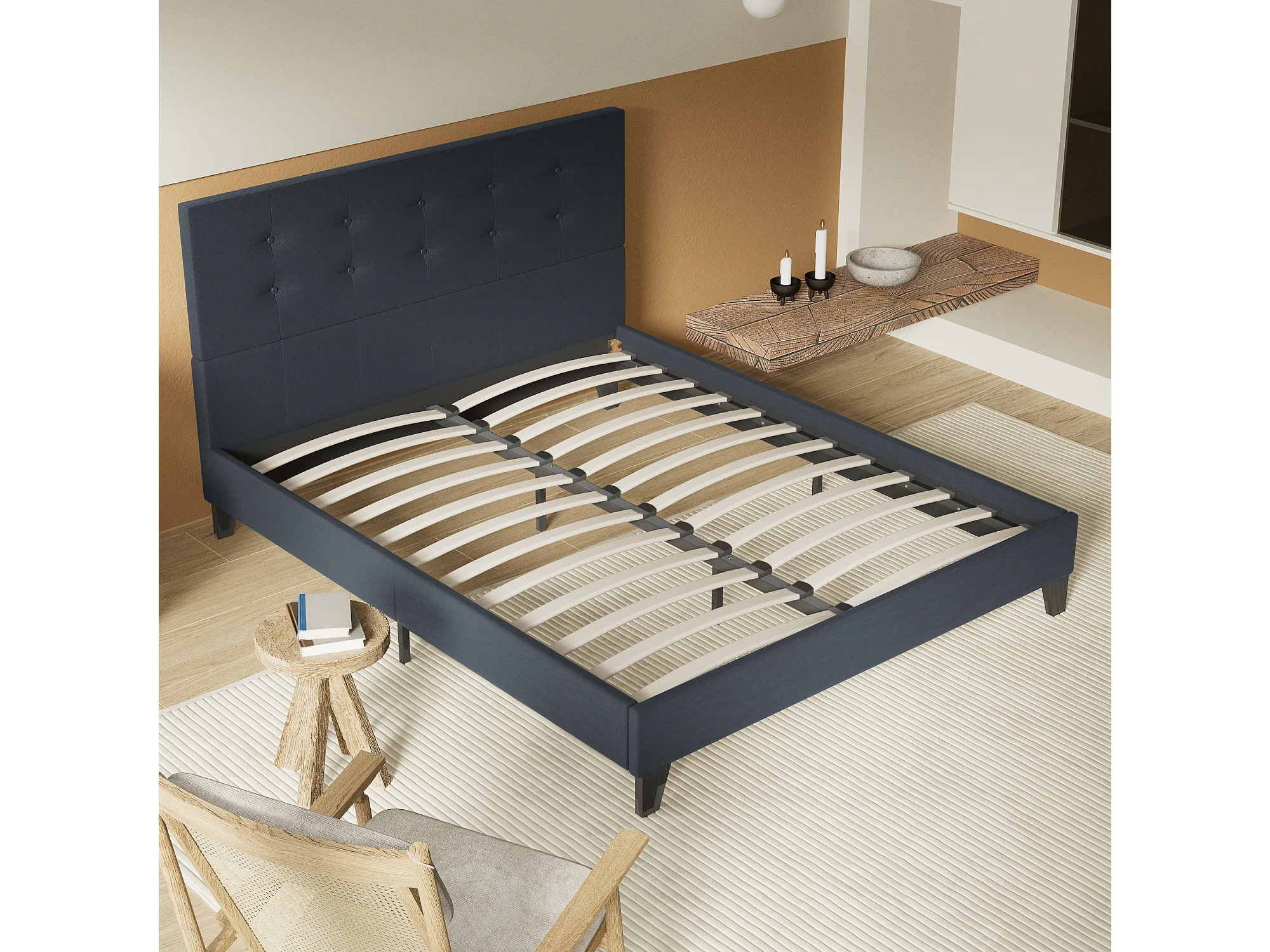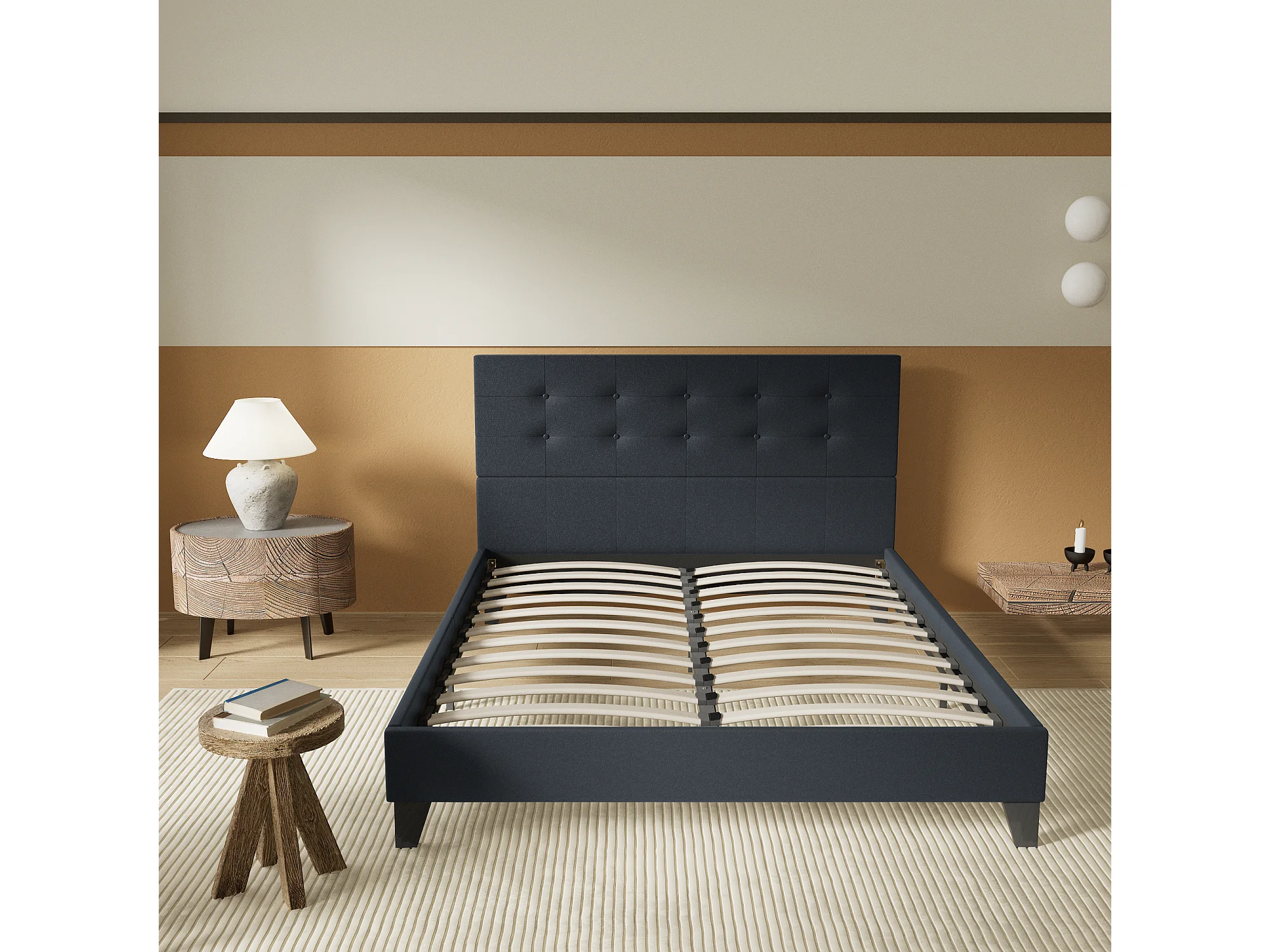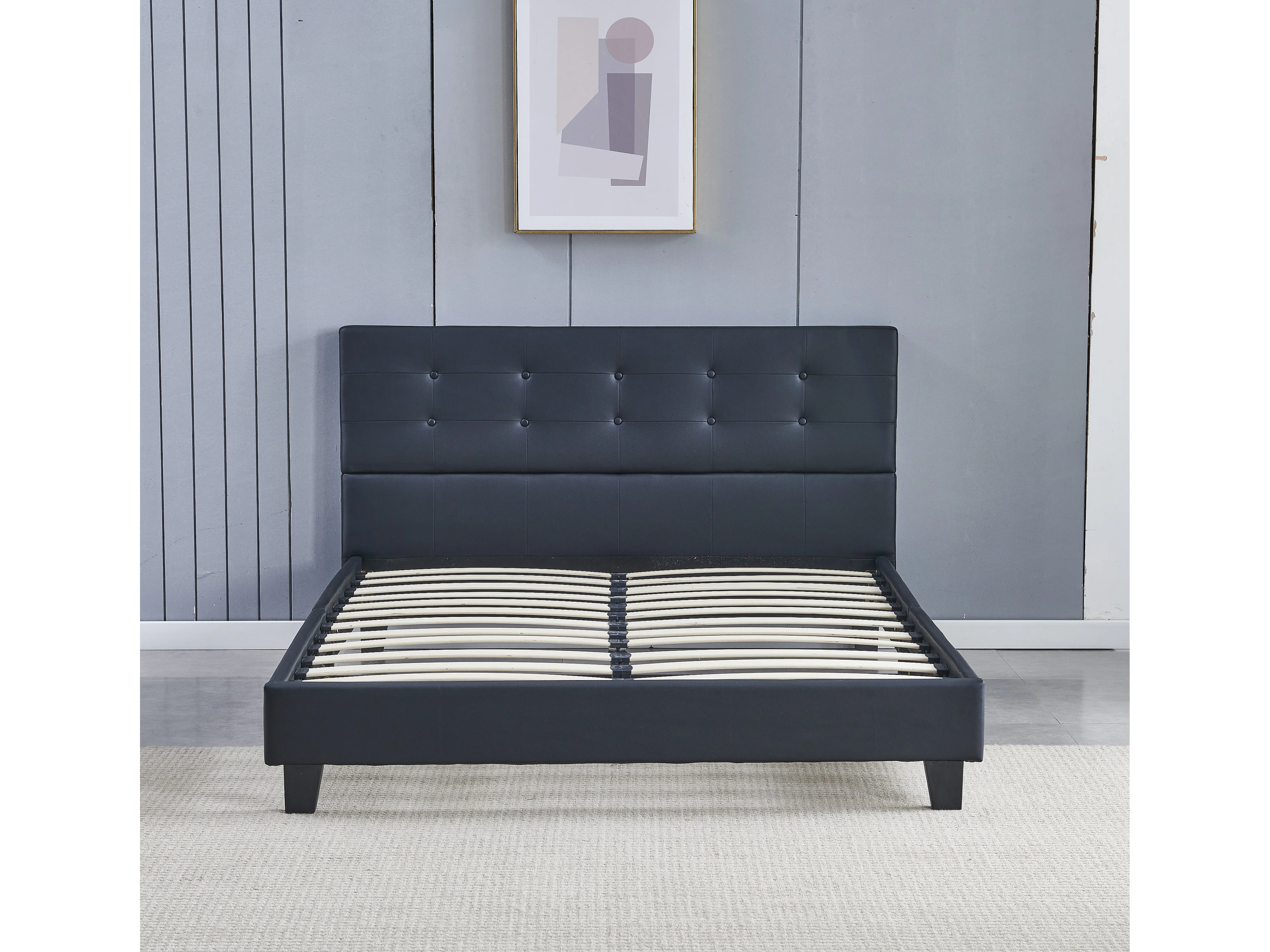 Lit 140x200 cm avec tête de lit similicuir couleur noir