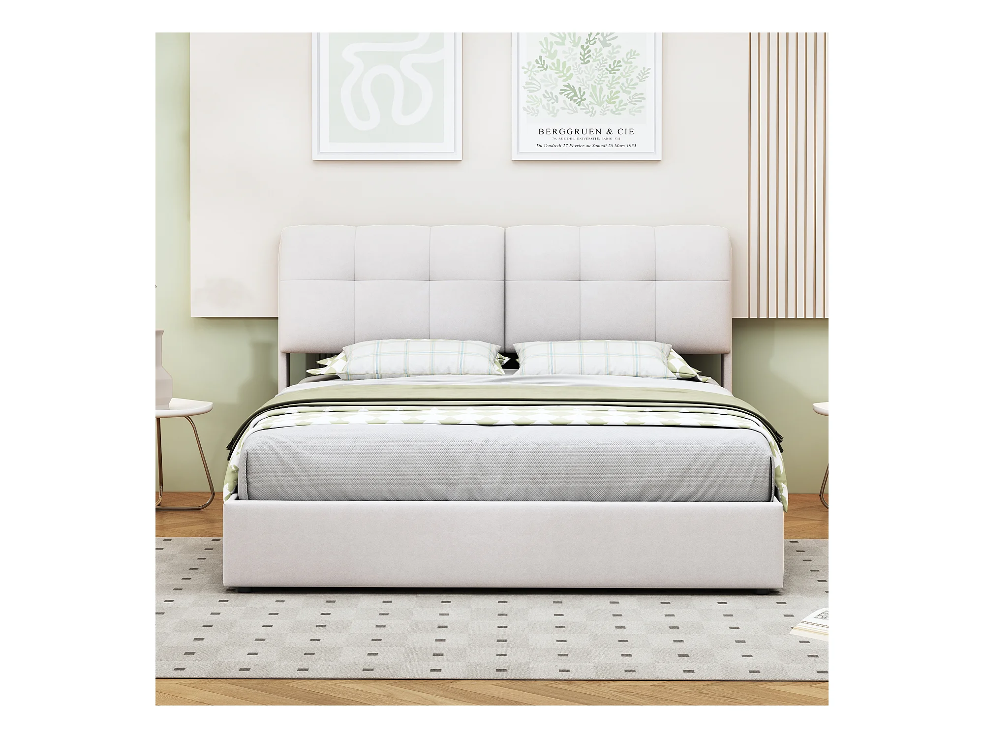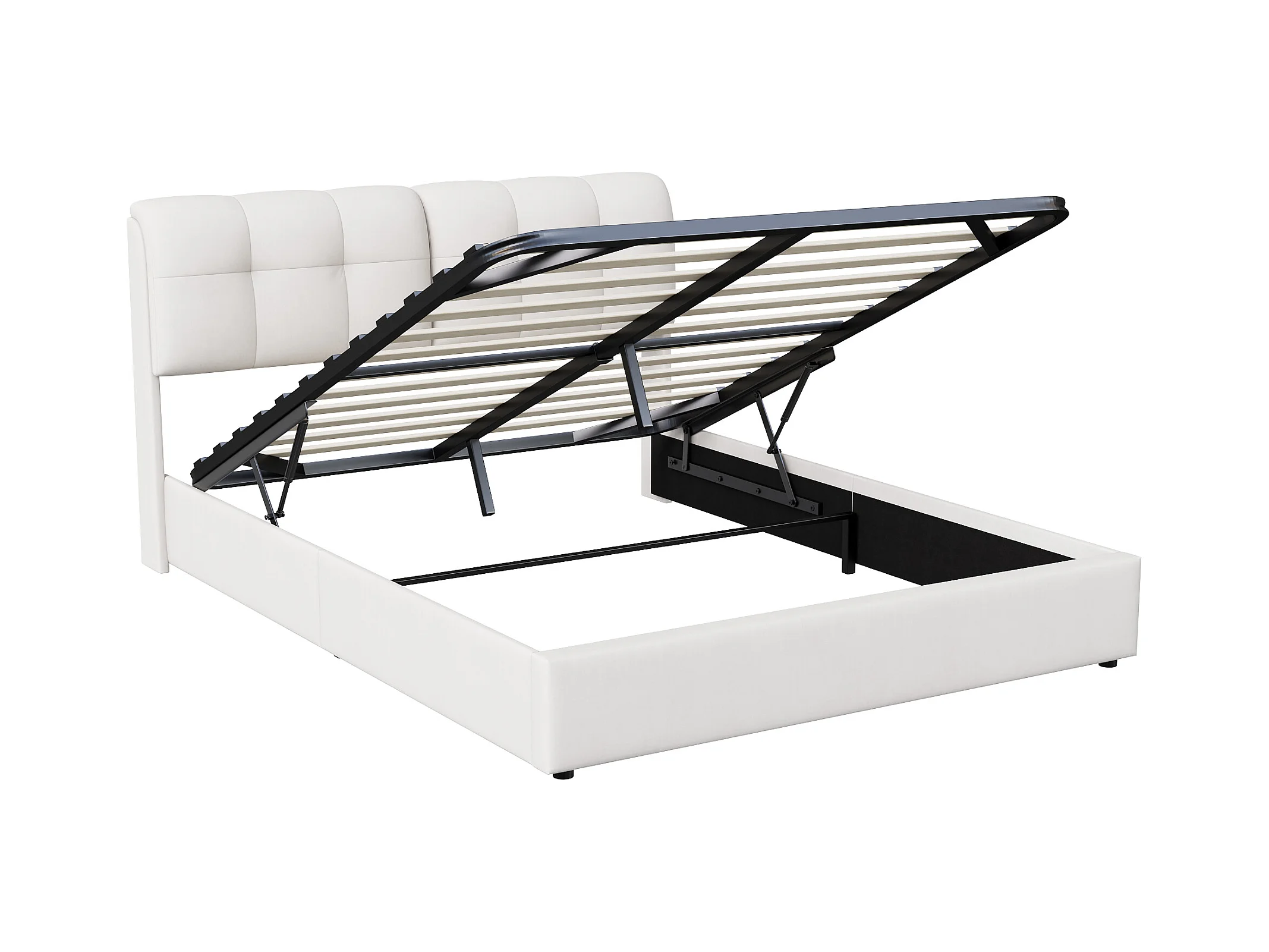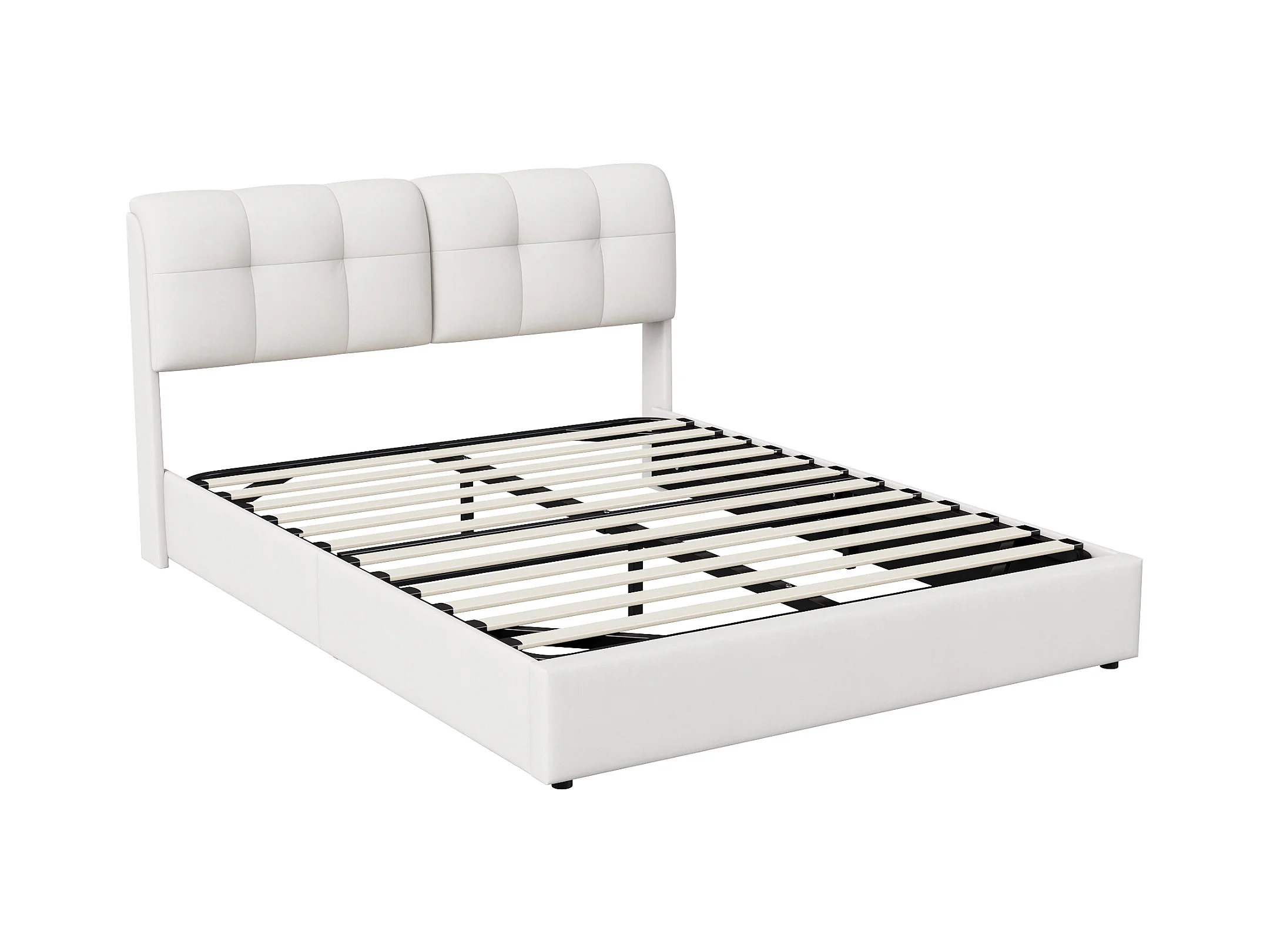 Lit 160x200 avec Sommier LED, lit double avec sommier à lattes et coffre de lit, en velours, Blanc