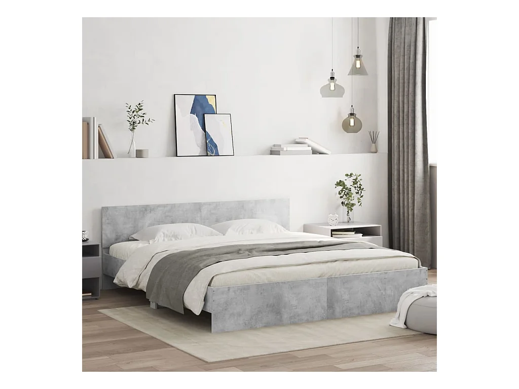 Lit-160x200 cm + tête de lit gris béton HOQW75764
