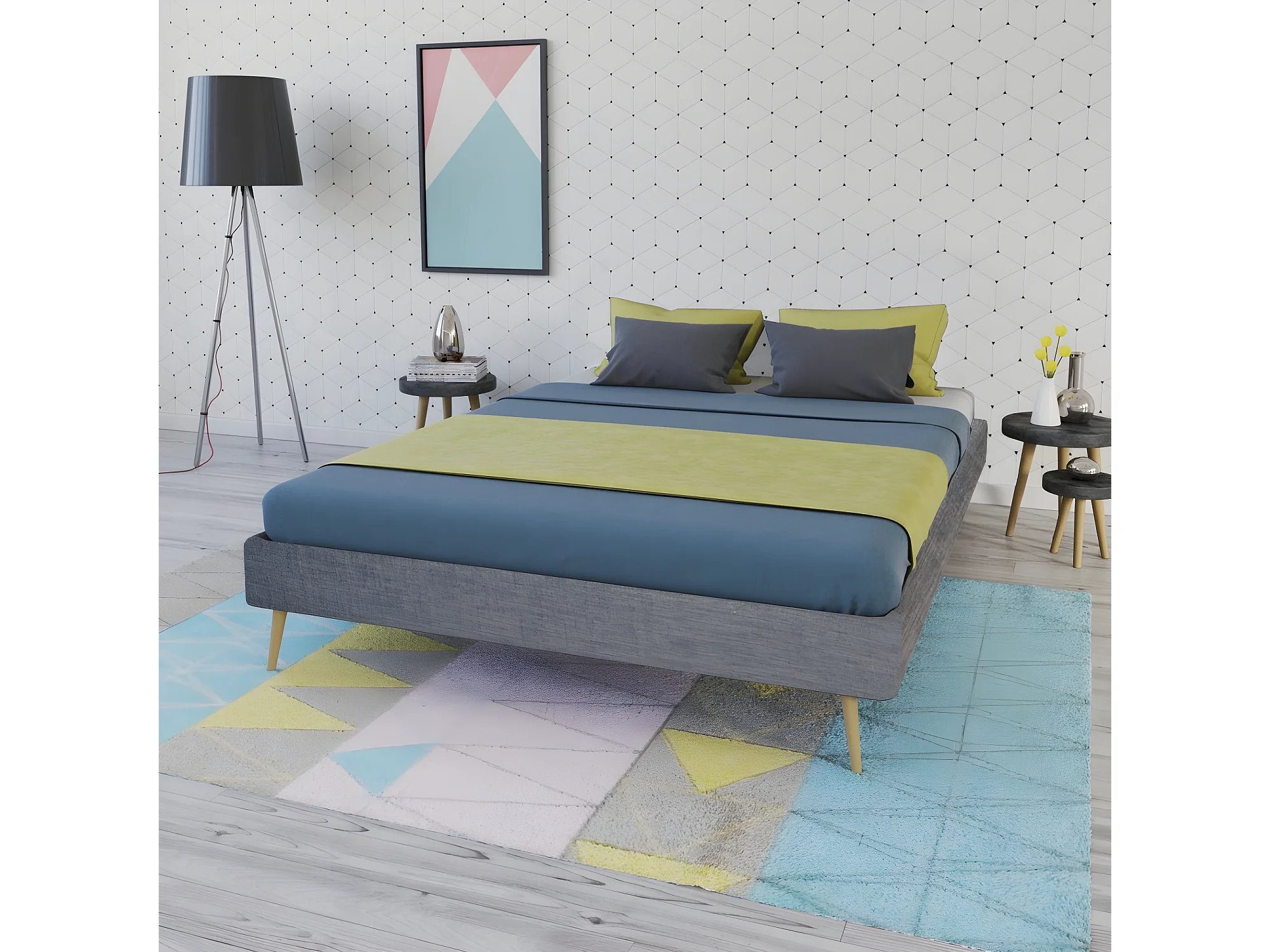 Lit BOREA 160x200 tissu + 1 sommier / Gris Foncé