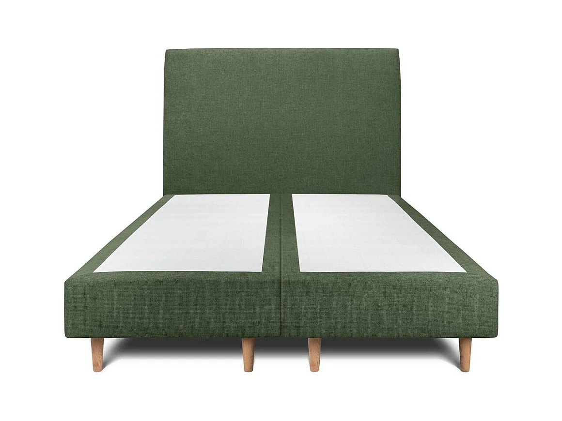 Lit 160x200cm avec tête de lit tapissier tissu et double sommier tapissier vert - Hauteur totale : 35cm